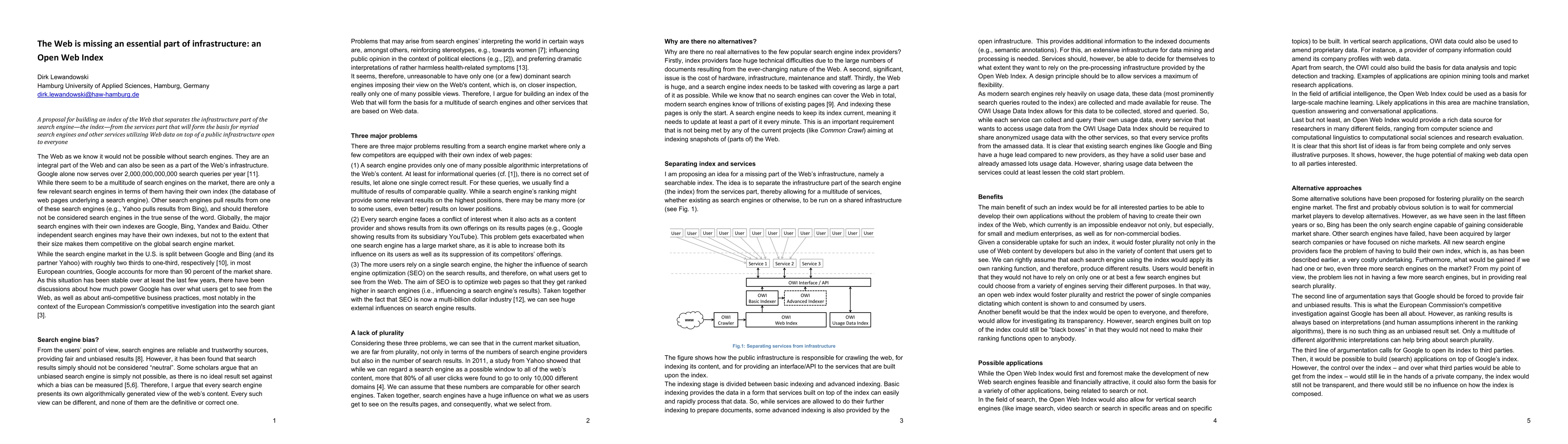 The proposed open Web index aims to improve data sharing, facilitate innovation, and promote accessibility across various search engines and services.