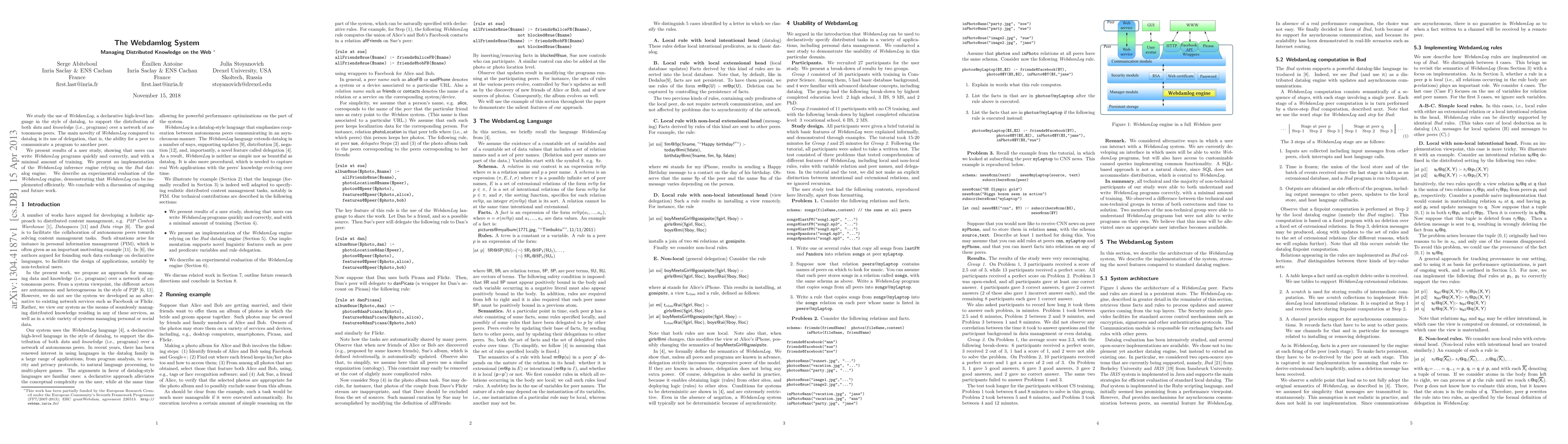 We study the use of WebdamLog, a declarative high-level lan- guage in the style of datalog, to support the distribution of both data and knowledge (i.e., programs) over a network of au- tonomous peers. The main novelty of WebdamLog compared to datalog is its use of delegation, that is, the ability for a peer to communicate a program to another peer. We present results of a user study, showing that users can write WebdamLog programs quickly and correctly, and with a minimal amount of training. We present an implementation of the WebdamLog inference engine relying on the Bud dat- alog engine. We describe an experimental evaluation of the WebdamLog engine, demonstrating that WebdamLog can be im- plemented efficiently. We conclude with a discussion of ongoing and future work.
