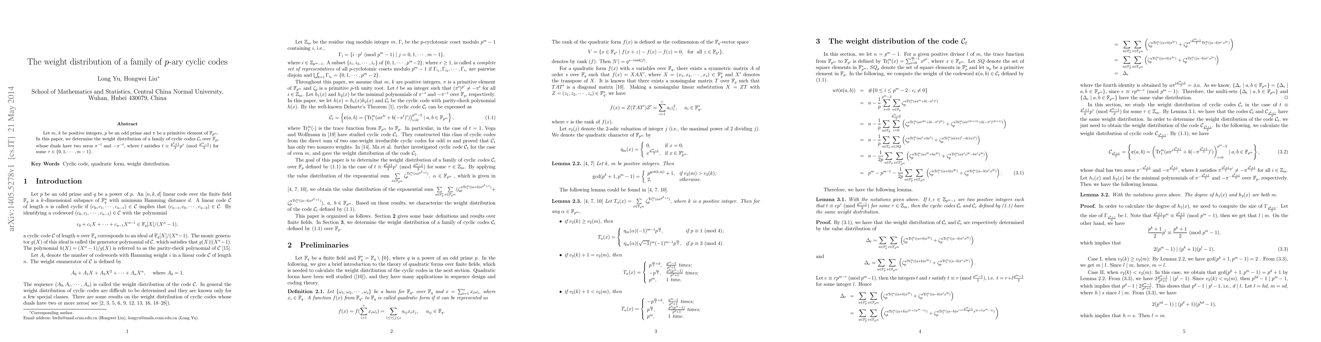 This paper investigates the weight distribution of a family of cyclic codes, focusing on their duals with specific roots, which leads to new insights into the error-correcting capabilities of these codes.