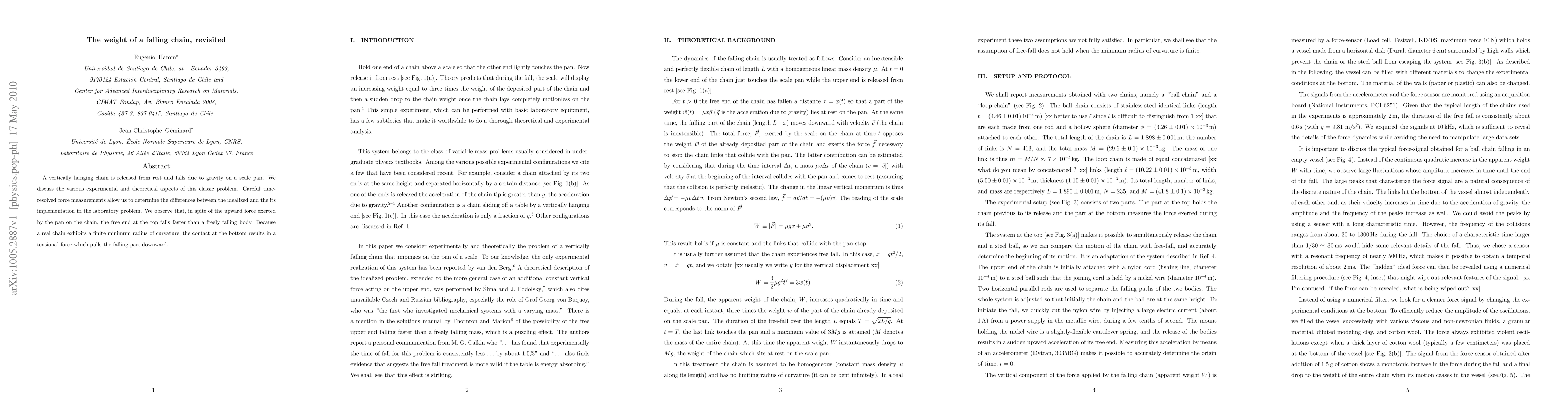 A falling chain is found to fall faster than a freely falling body due to the upward force exerted by the scale pan on the chain, despite initial expectations of a slower descent. The finite minimum radius of curvature in real chains causes tensional forces that pull the falling part downward.
