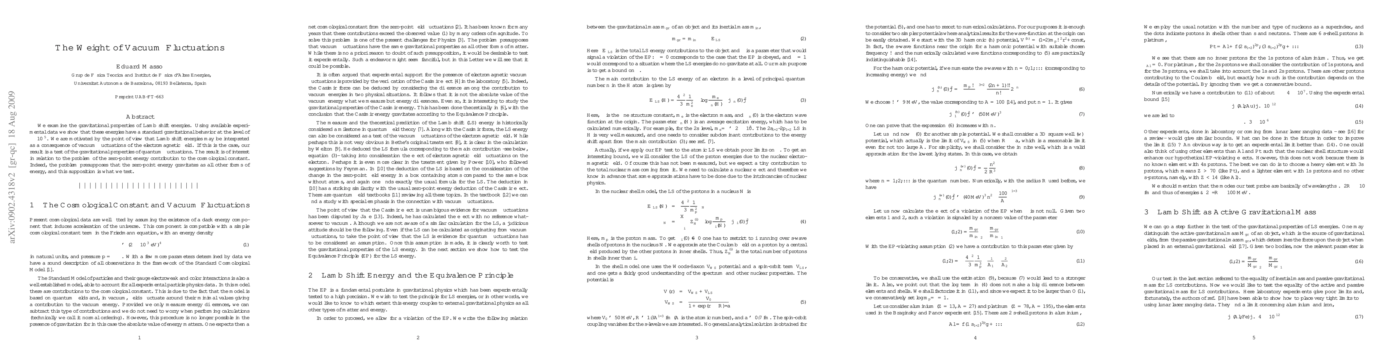 We examine the gravitational properties of Lamb shift energies. Using available experimental data we show that these energies have a standard gravitational behavior at the level of $\sim 10^{-5}$. We are motivated by the point of view that Lamb shift energies may be interpreted as a consequence of vacuum fluctuations of the electromagnetic field. If this is the case, our result is a test of the gravitational properties of quantum fluctuations. The result is of interest in relation to the problem of the zero-point energy contribution to the cosmological constant. Indeed, the problem presupposes that the zero-point energy gravitates as all other forms of energy, and this supposition is what we test.