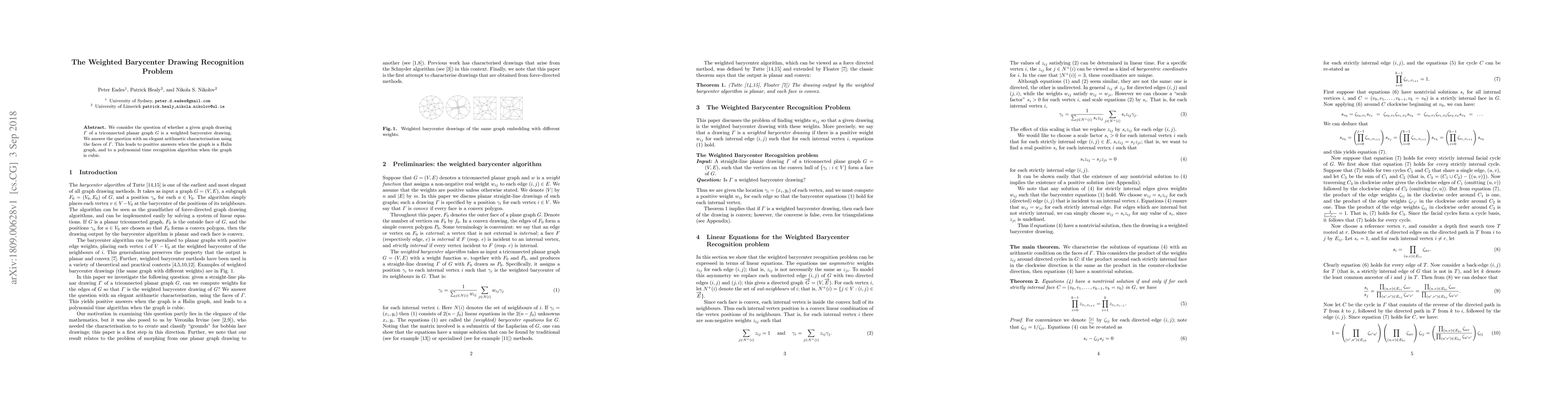 We consider the question of whether a given graph drawing $\Gamma$ of a triconnected planar graph $G$ is a weighted barycenter drawing. We answer the question with an elegant arithmetic characterisation using the faces of $\Gamma$. This leads to positive answers when the graph is a Halin graph, and to a polynomial time recognition algorithm when the graph is cubic.
