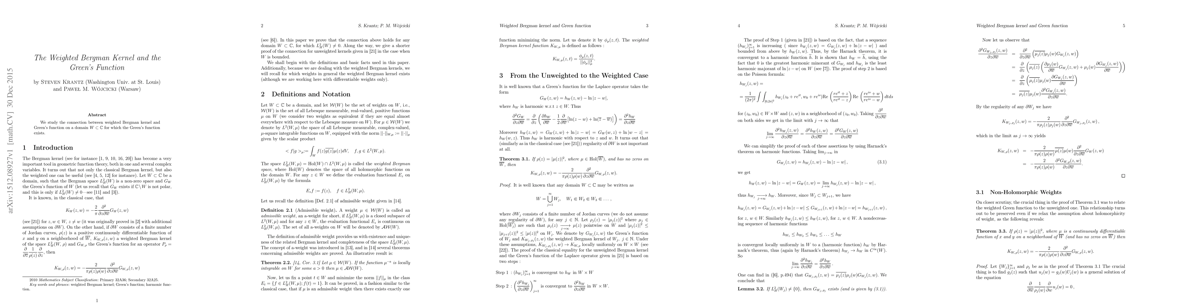 We study the connection between weighted Bergman kernel and Green's function on a domain W lying in C for which the Green's function exists.