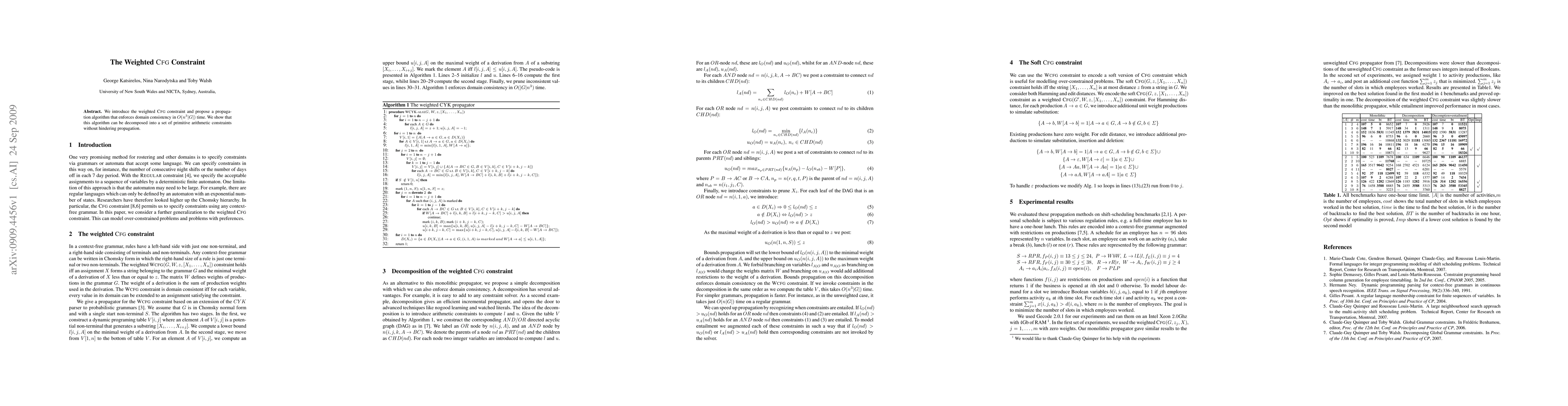 We introduce the weighted CFG constraint and propose a propagation algorithm that enforces domain consistency in $O(n^3|G|)$ time. We show that this algorithm can be decomposed into a set of primitive arithmetic constraints without hindering propagation.