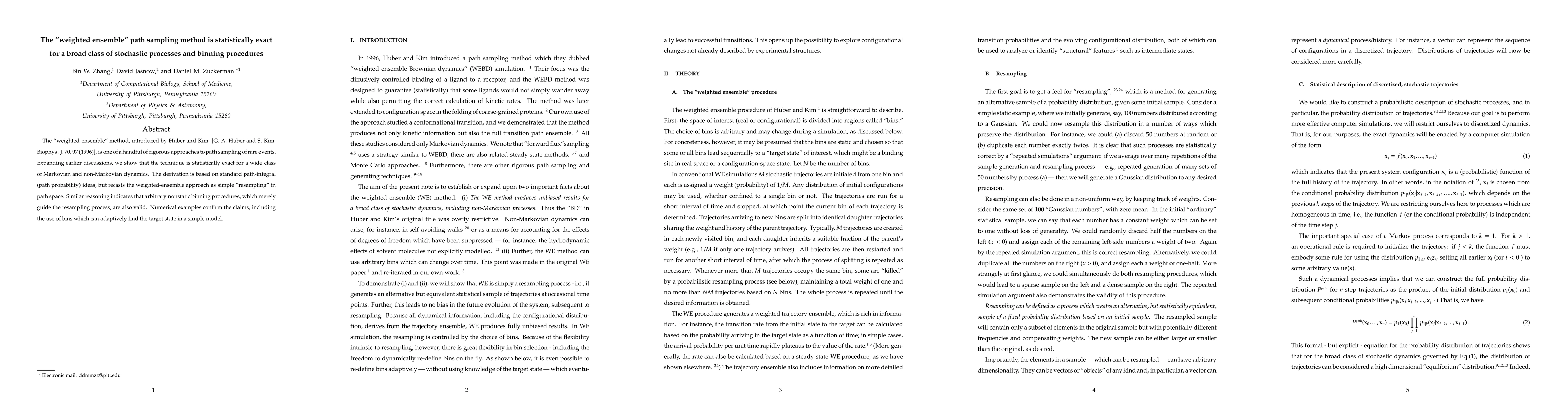 The "weighted ensemble" method is statistically exact for a broad class of stochastic processes and binning procedures, including both Markovian and non-Markovian dynamics, as well as various nonstatic binning strategies. Numerical examples validate the method's effectiveness in adaptively finding target states.