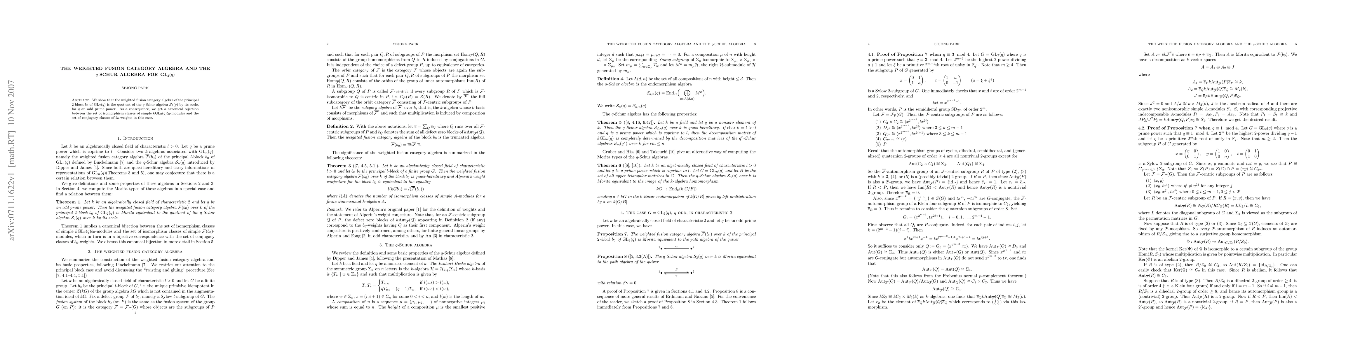 Summary: The paper demonstrates that the weighted fusion category algebra of the principal 2-block of $\mathrm{GL}_2(q)$ is isomorphic to the quotient of the $q$-Schur algebra by its socle, for odd prime power $q$. This establishes a canonical bijection between simple $k\mathrm{GL}_2(q)b_0$-modules and the conjugacy classes of $b_0$-weights.