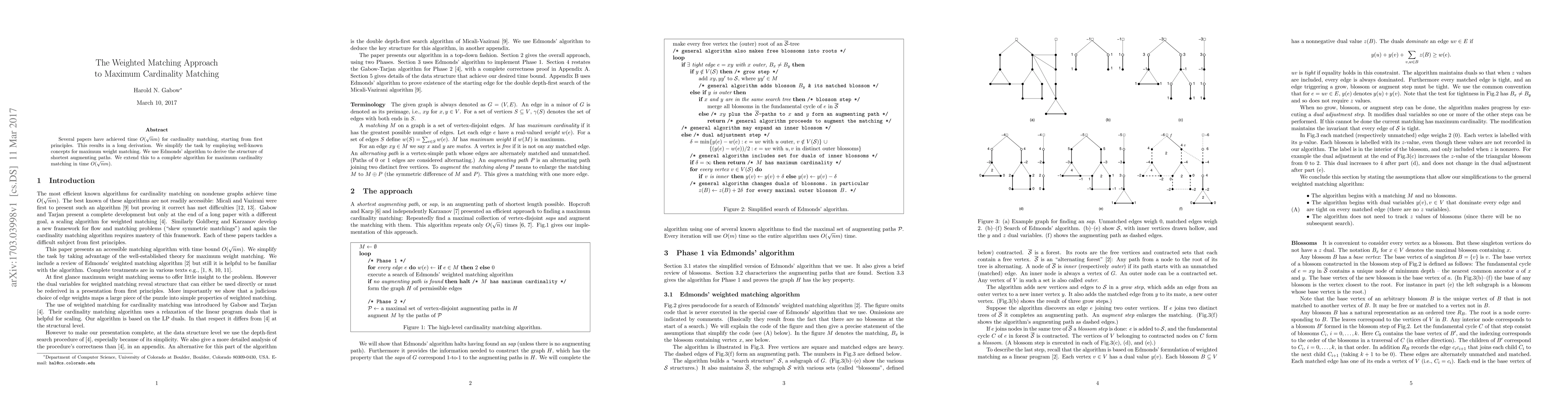 This paper simplifies the derivation for maximum cardinality matching by leveraging concepts from maximum weight matching, employing Edmonds' algorithm to structure shortest augmenting paths and achieving a time complexity of $O(\sqrt n m)$.