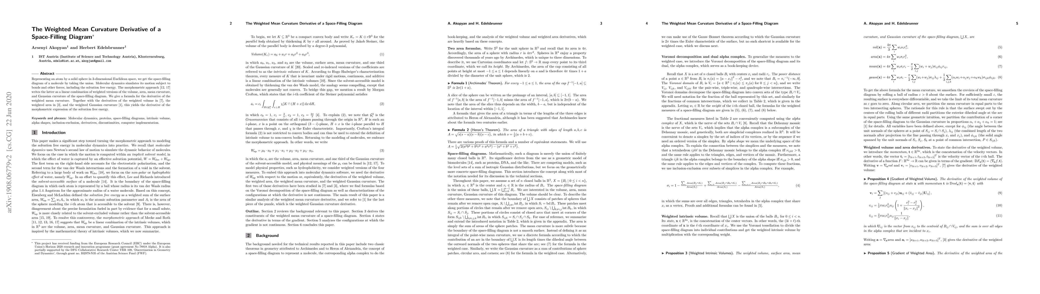 Representing an atom by a solid sphere in $3$-dimensional Euclidean space, we get the space-filling diagram of a molecule by taking the union. Molecular dynamics simulates its motion subject to bonds and other forces, including the solvation free energy. The morphometric approach [HRC13,RHK06] writes the latter as a linear combination of weighted versions of the volume, area, mean curvature, and Gaussian curvature of the space-filling diagram. We give a formula for the derivative of the weighted mean curvature. Together with the derivatives of the weighted volume in [EdKo03], the weighted area in [BEKL04], and the weighted Gaussian curvature [AkEd19], this yields the derivative of the morphometric expression of the solvation free energy.