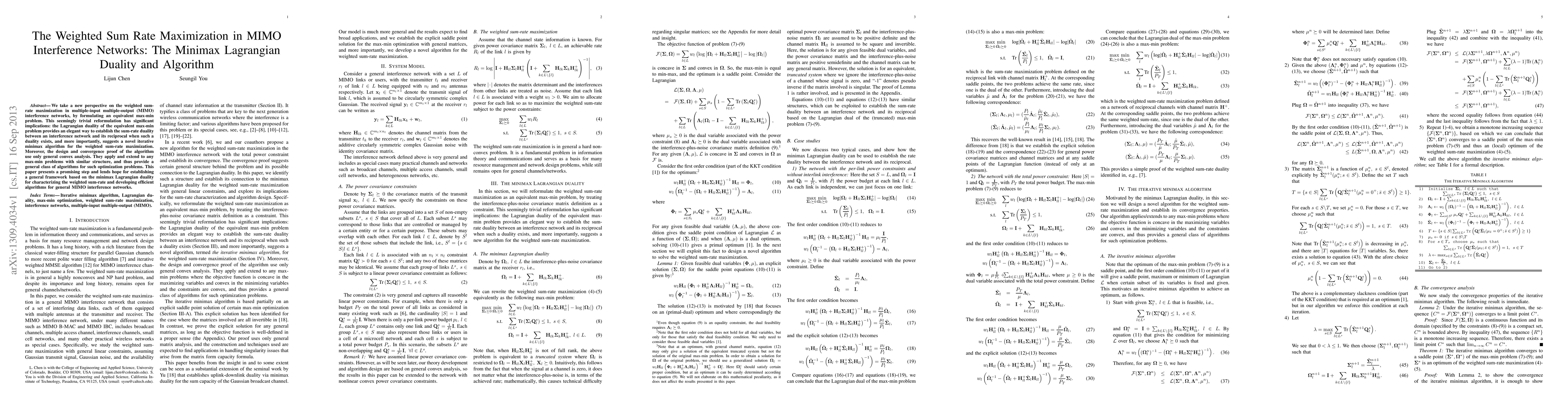 This paper reformulates weighted sum-rate maximization in MIMO networks as a max-min problem, leveraging Lagrangian duality to establish a sum-rate duality between networks and their reciprocals. It introduces a novel iterative minimax algorithm based on this duality, applicable to a broad class of optimization problems.