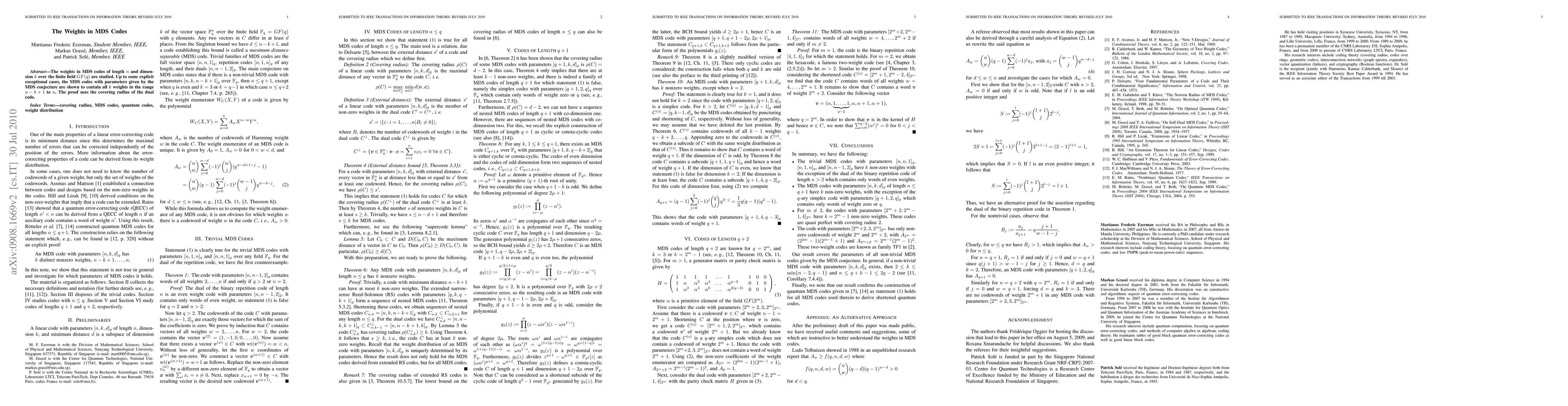 The weights in MDS codes of length n and dimension k over the finite field GF(q) are studied. Up to some explicit exceptional cases, the MDS codes with parameters given by the MDS conjecture are shown to contain all k weights in the range n-k+1 to n. The proof uses the covering radius of the dual code