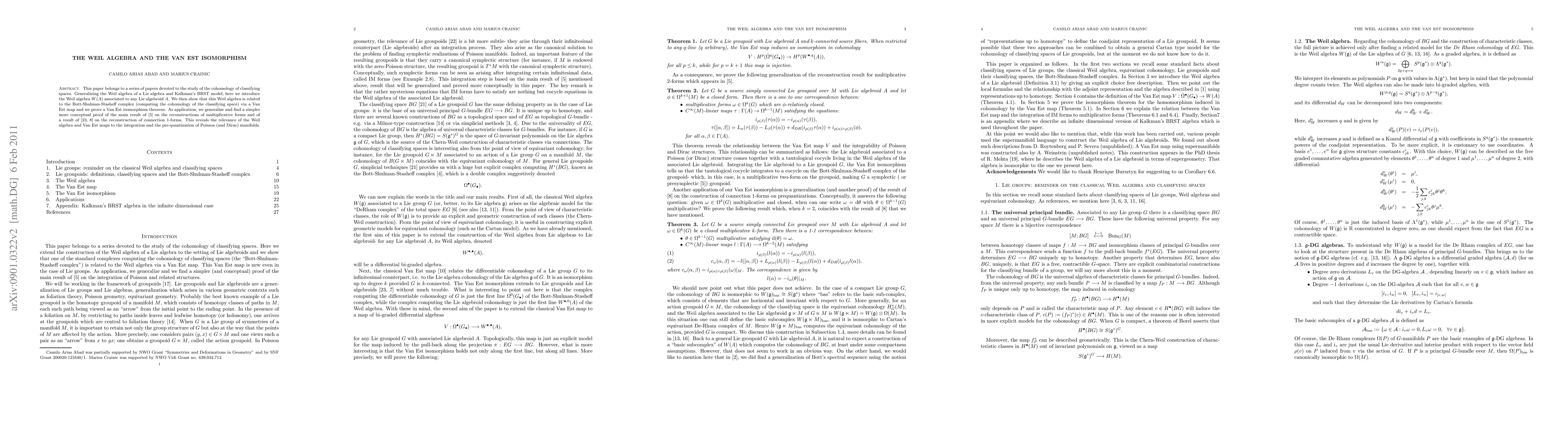 This paper belongs to a series devoted to the study of the cohomology of classifying spaces. Generalizing the Weil algebra of a Lie algebra and Kalkman's BRST model, here we introduce the Weil algebra $W(A)$ associated to any Lie algebroid $A$. We then show that this Weil algebra is related to the Bott-Shulman-Stasheff complex (computing the cohomology of the classifying space) via a Van Est map and we prove a Van Est isomorphism theorem. As application, we generalize and find a simpler more conceptual proof of the main result of Bursztyn et.al. on the reconstructions of multiplicative forms and of a result of Weinstein-Xu and Crainic on the reconstruction of connection 1-forms. This reveals the relevance of the Weil algebra and Van Est maps to the integration and the pre-quantization of Poisson (and Dirac) manifolds.