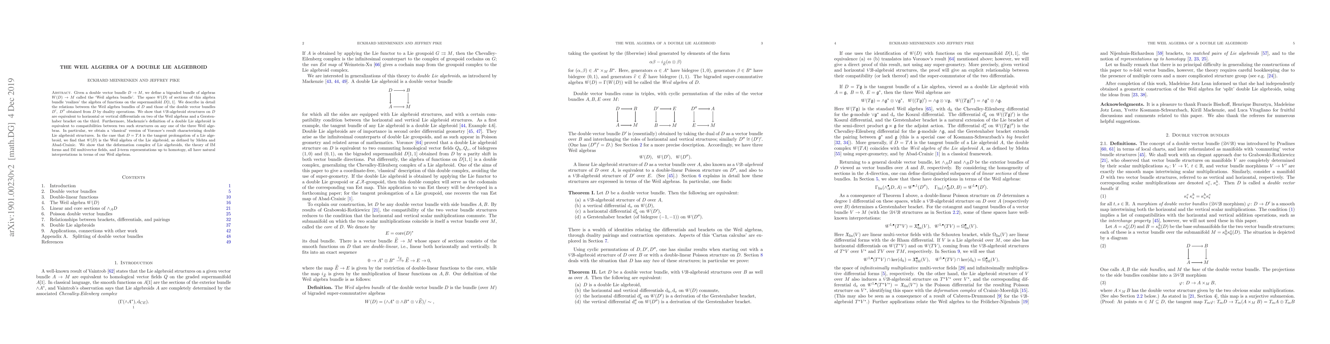 Given a double vector bundle $D\to M$, we define a bigraded `Weil algebra' $\mathcal{W}(D)$, which `realizes' the algebra of smooth functions on the supermanifold $D[1,1]$. We describe in detail the relations between the Weil algebras of $D$ and those of the double vector bundles $D',\ D"$ obtained by duality operations. In particular, we show that double-linear Poisson structures on $D$ can be described alternatively as Gerstenhaber brackets on $\mathcal{W}(D)$, vertical differentials on $\mathcal{W}(D')$, or horizontal differentials on $\mathcal{W}(D")$. We also give a new proof of Voronov's result characterizing double Lie algebroid structures. In the case that $D=TA$ is the tangent prolongation of a Lie algebroid, we find that $\mathcal{W}(D)$ is the Weil algebra of the Lie algebroid, as defined by Mehta and Abad-Crainic. We show that the deformation complex of Lie algebroids, the theory of IM forms and IM multivector fields, and 2-term representations up to homotopy all have natural interpretations in terms of our Weil algebras.