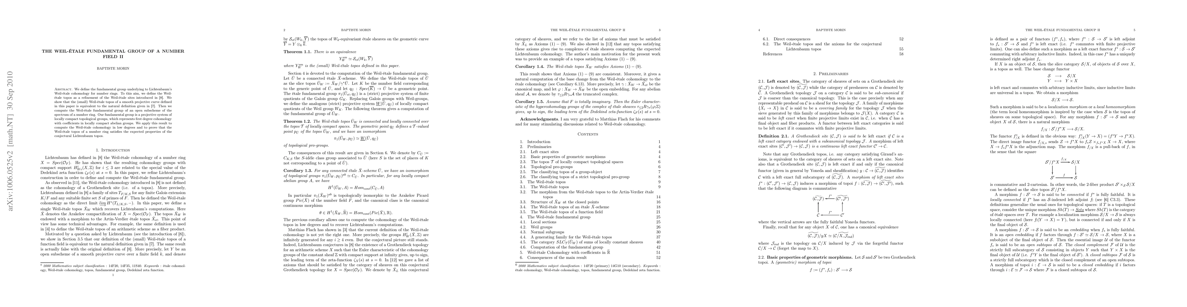 This paper defines the fundamental group for Lichtenbaum's Weil-étale cohomology of number rings, establishing the equivalence of the Weil-étale topos with a previous definition for finite fields. It computes the Weil-étale fundamental group as a projective system of locally compact groups and applies this to verify the properties of the conjectural Lichtenbaum topos.