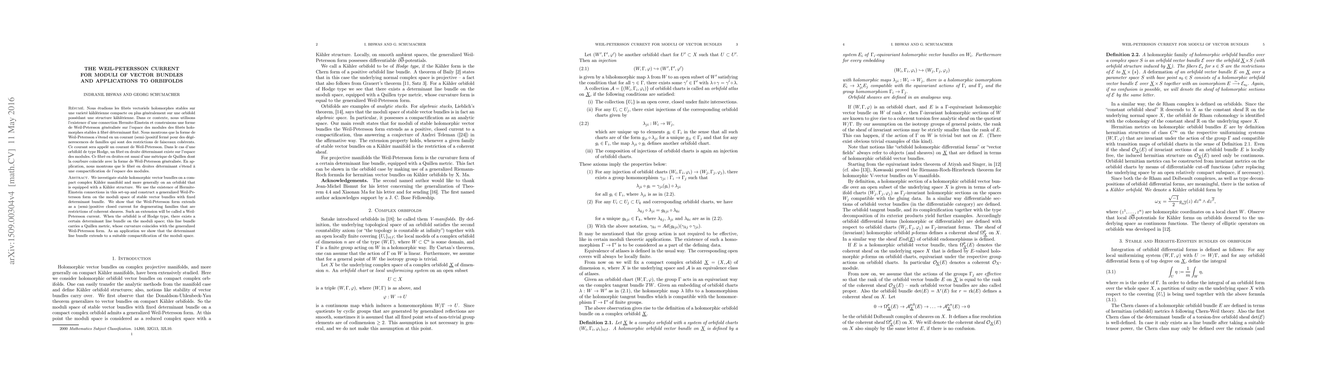 This paper constructs a generalized Weil-Petersson current on the moduli space of stable holomorphic vector bundles over Kähler manifolds and orbifolds, extending the form to degenerating families. It shows that this current corresponds to a Quillen metric on a determinant line bundle under certain conditions, providing a method for compactifying the moduli space.