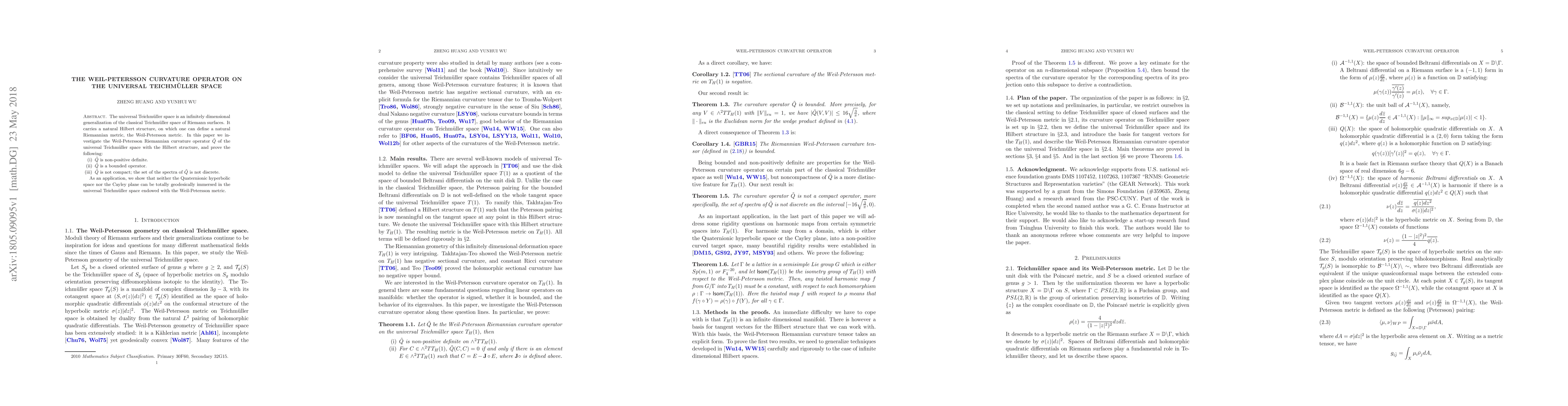 This paper investigates the Weil-Petersson Riemannian curvature operator $\tilde{Q}$ on the universal Teichmüller space, proving it is non-positive definite, bounded, but not compact. It also demonstrates that Quaternionic hyperbolic space and the Cayley plane cannot be immersed in this space.