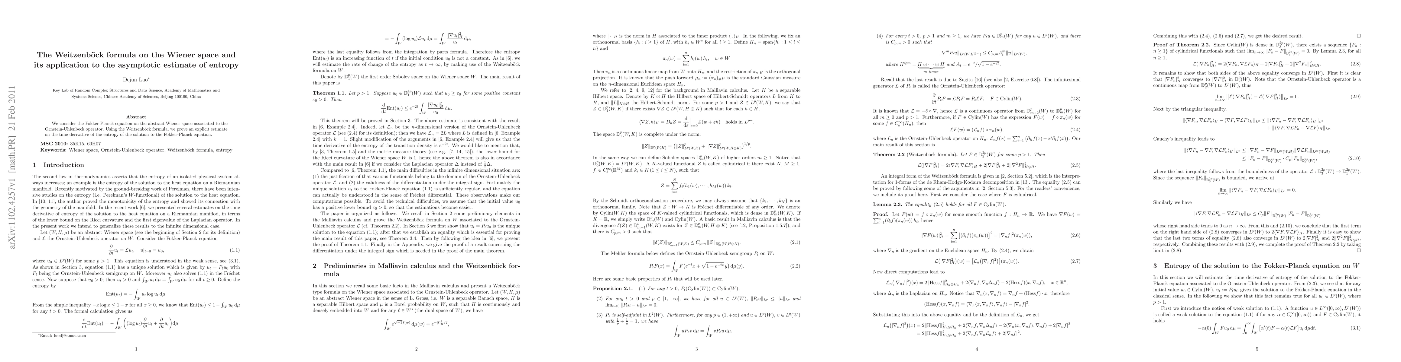 We consider the Fokker-Planck equation on the abstract Wiener space associated to the Ornstein-Uhlenbeck operator. Using the Weitzenb\"ock formula, we prove an explicit estimate on the time derivative of the entropy of the solution to the Fokker-Planck equation.