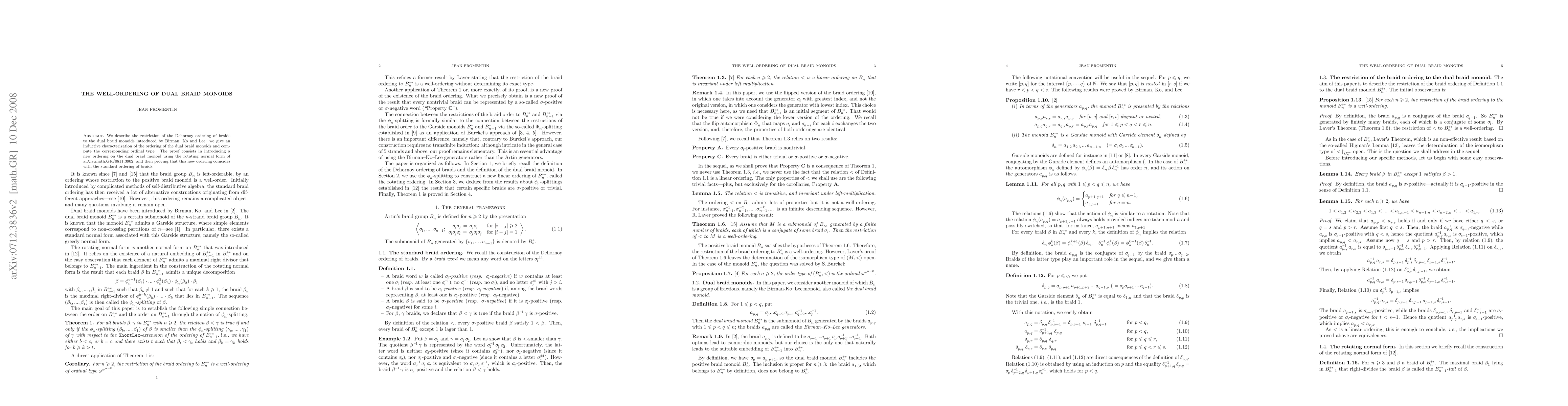 The paper details an inductive characterization and computation of the Dehornoy ordering for dual braid monoids, establishing a new ordering via the rotating normal form that aligns with the standard braid ordering. The study computes the ordinal type of this well-ordering.