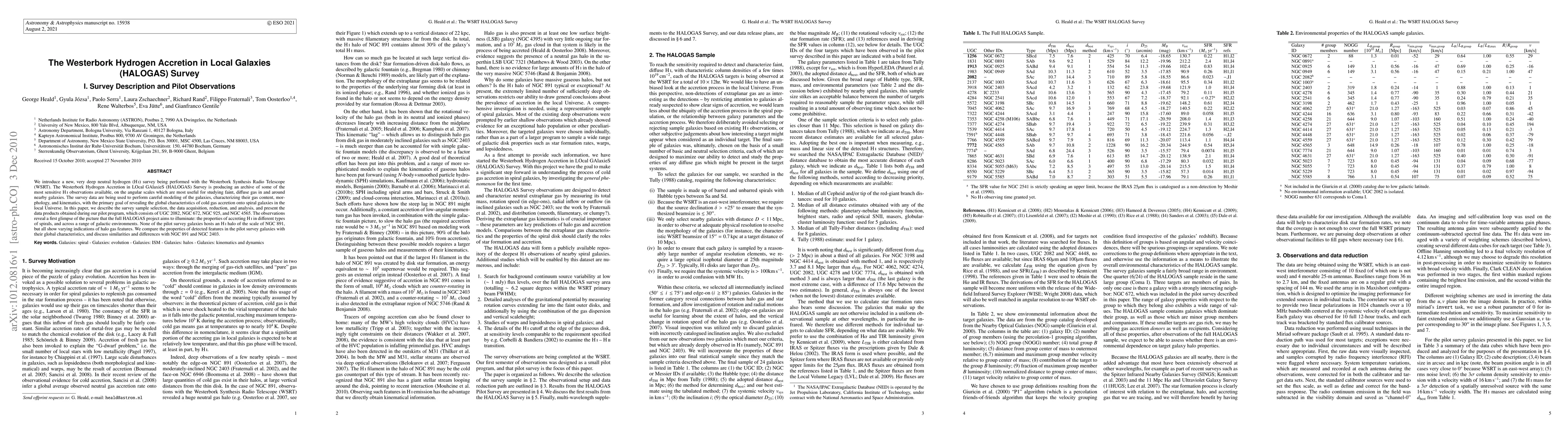 The Westerbork Hydrogen Accretion in Local Galaxies (HALOGAS) Survey is a deep neutral hydrogen (HI) survey using the Westerbork Synthesis Radio Telescope (WSRT), aiming to characterize gas content, morphology, and kinematics of nearby spiral galaxies to study cold gas accretion.