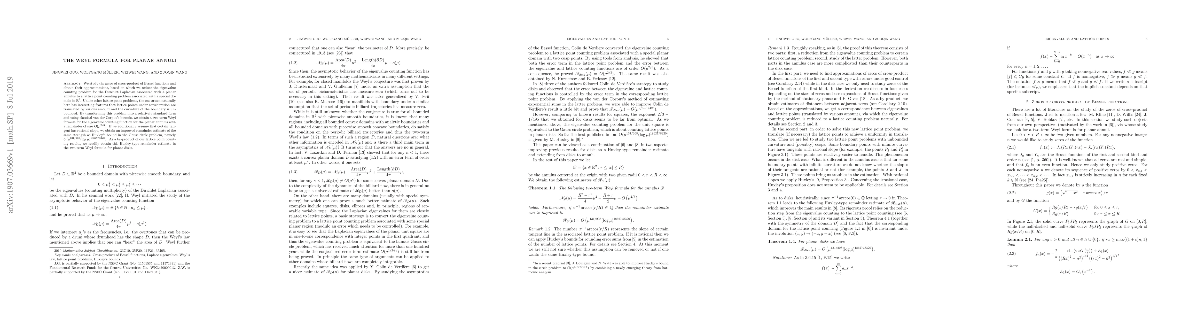 Researchers developed a two-term Weyl formula to count eigenvalues of the Dirichlet Laplacian on planar annuli, improving previous estimates in some cases.
