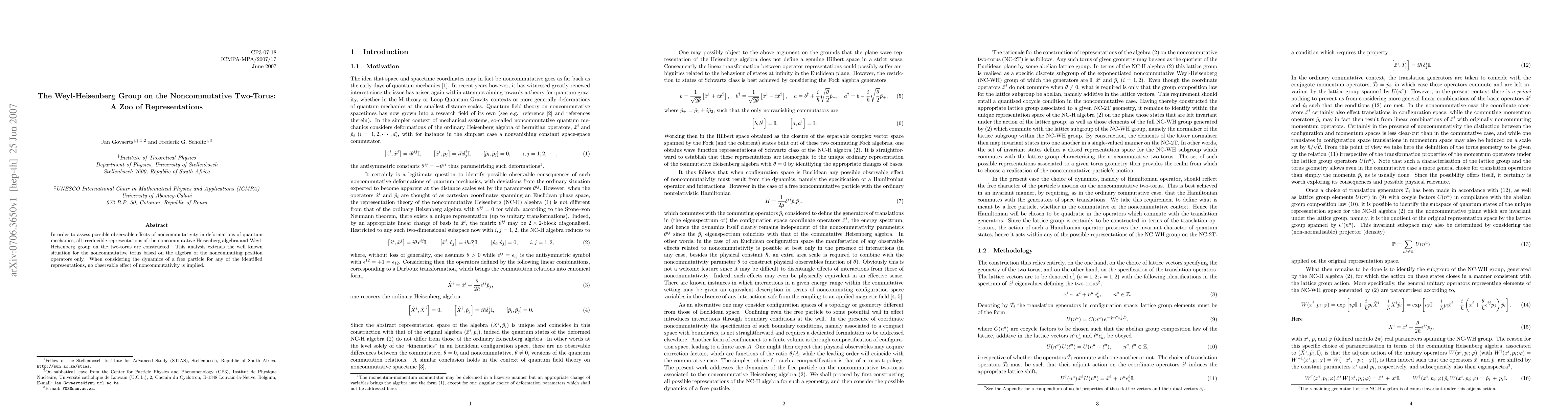 Summary: This research constructs all irreducible representations of the noncommutative Heisenberg algebra and Weyl-Heisenberg group on the two-torus, extending previous work on the noncommutative torus. The study finds no observable effects of noncommutativity in the dynamics of a free particle across these representations.