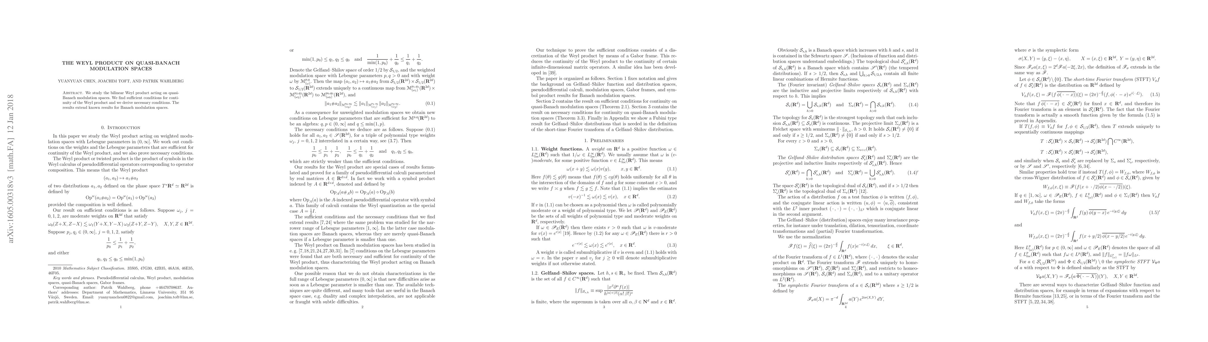 We study the bilinear Weyl product acting on quasi-Banach modulation spaces. We find sufficient conditions for continuity of the Weyl product and we derive necessary conditions. The results extend known results for Banach modulation spaces.