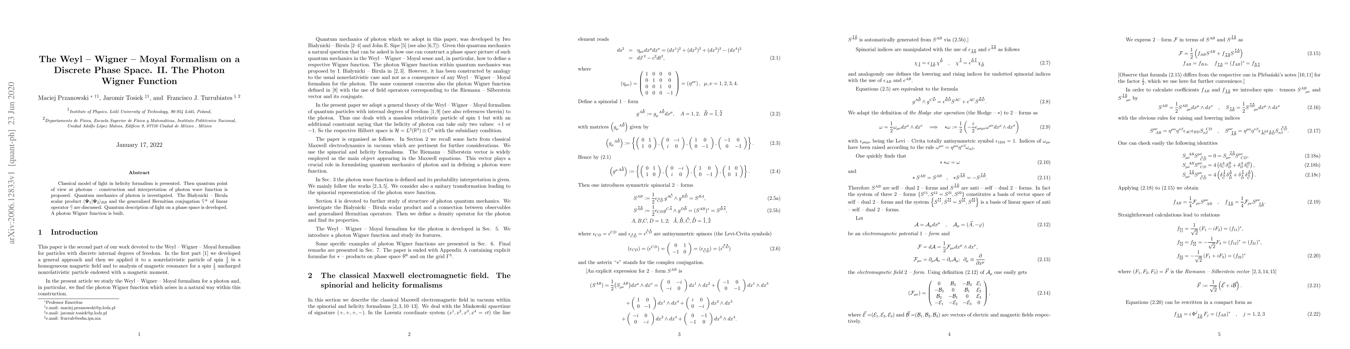 This paper develops a quantum description of light using the Weyl-Wigner-Moyal formalism on a discrete phase space, introducing a photon wave function and a photon Wigner function for understanding the quantum mechanics of photons. The Bialynicki-Birula scalar product and generalized Hermitian conjugation are discussed to frame this new quantum treatment.