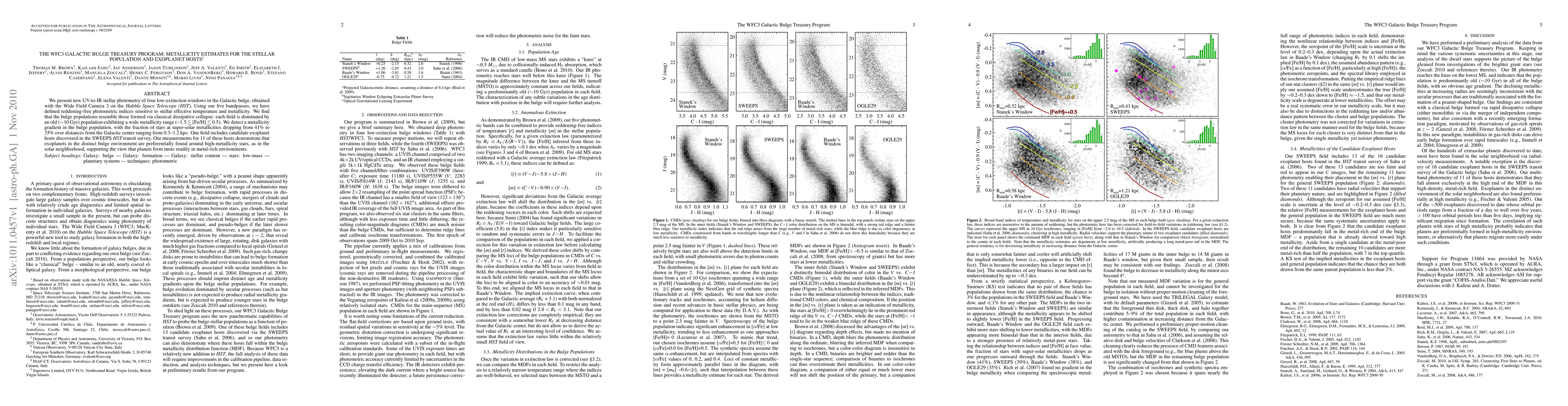The WFC3 Galactic Bulge Treasury Program provides new UV-to-IR stellar photometry in the Galactic bulge, revealing an old (~10 Gyr) population with a wide metallicity range. Exoplanet hosts in the bulge preferentially orbit high-metallicity stars, mirroring the solar neighborhood trend.