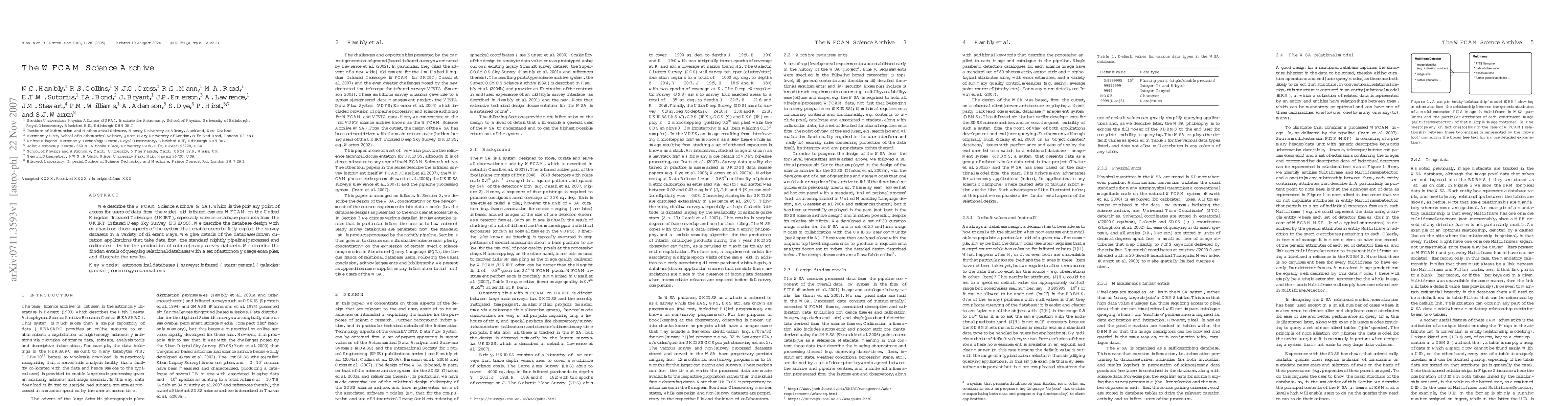 The WFCAM Science Archive (WSA) provides access to data from the WFCAM camera on the UKIRT, focusing on the UKIDSS survey. It includes database-driven curation applications for producing science-ready datasets, and offers relational database querying tools with astronomy-specific examples.