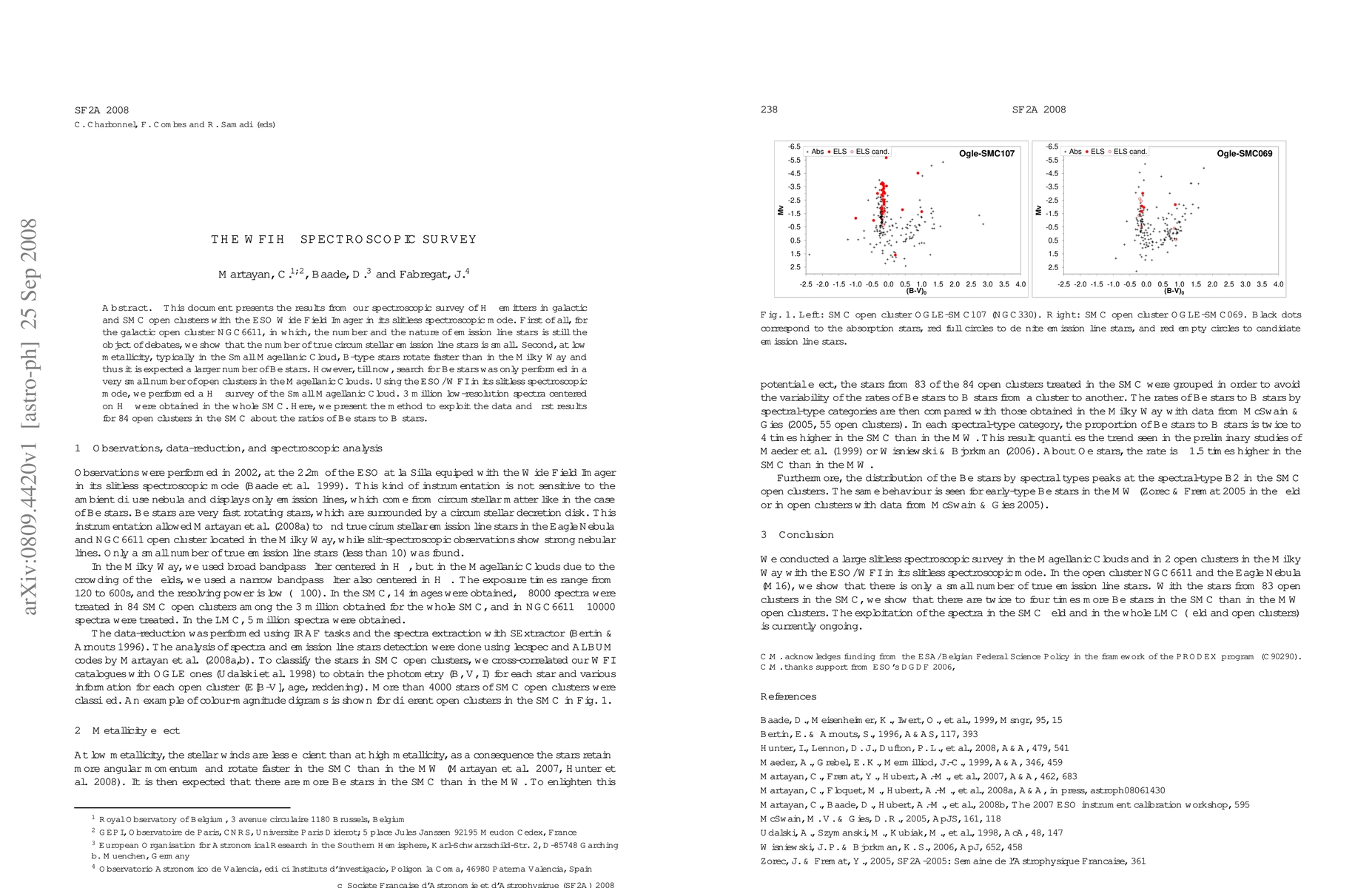 This document presents the results from our spectroscopic survey of Halpha emitters in galactic and SMC open clusters with the ESO Wide Field Imager in its slitless spectroscopic mode. First of all, for the galactic open cluster NGC6611, in which, the number and the nature of emission line stars is still the object of debates, we show that the number of true circumstellar emission line stars is small. Second, at low metallicity, typically in the Small Magellanic Cloud, B-type stars rotate faster than in the Milky Way and thus it is expected a larger number of Be stars. However, till now, search for Be stars was only performed in a very small number of open clusters in the Magellanic Clouds. Using the ESO/WFI in its slitless spectroscopic mode, we performed a Halpha survey of the Small Magellanic Cloud. 3 million low-resolution spectra centered on Halpha were obtained in the whole SMC. Here, we present the method to exploit the data and first results for 84 open clusters in the SMC about the ratios of Be stars to B stars.