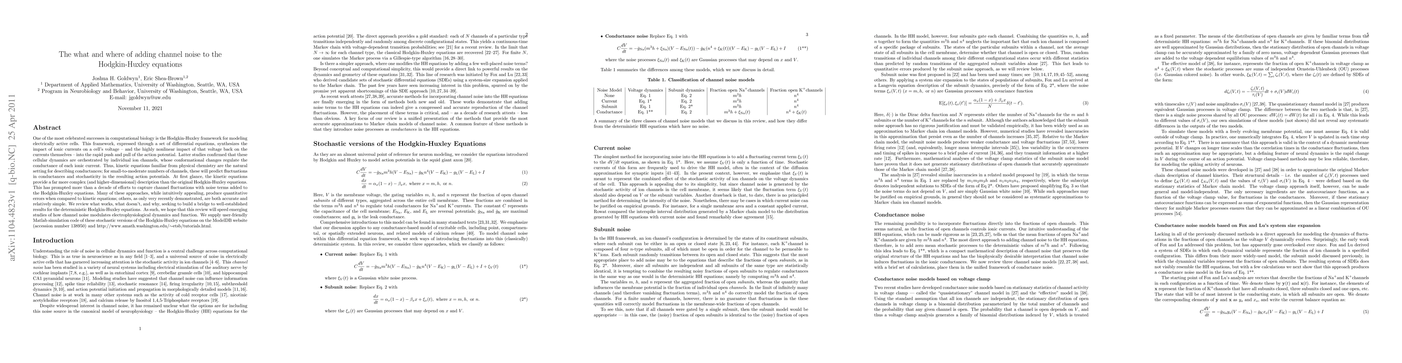 One of the most celebrated successes in computational biology is the Hodgkin-Huxley framework for modeling electrically active cells. This framework, expressed through a set of differential equations, synthesizes the impact of ionic currents on a cell's voltage -- and the highly nonlinear impact of that voltage back on the currents themselves -- into the rapid push and pull of the action potential. Latter studies confirmed that these cellular dynamics are orchestrated by individual ion channels, whose conformational changes regulate the conductance of each ionic current. Thus, kinetic equations familiar from physical chemistry are the natural setting for describing conductances; for small-to-moderate numbers of channels, these will predict fluctuations in conductances and stochasticity in the resulting action potentials. At first glance, the kinetic equations provide a far more complex (and higher-dimensional) description than the original Hodgkin-Huxley equations. This has prompted more than a decade of efforts to capture channel fluctuations with noise terms added to the Hodgkin-Huxley equations. Many of these approaches, while intuitively appealing, produce quantitative errors when compared to kinetic equations; others, as only very recently demonstrated, are both accurate and relatively simple. We review what works, what doesn't, and why, seeking to build a bridge to well-established results for the deterministic Hodgkin-Huxley equations. As such, we hope that this review will speed emerging studies of how channel noise modulates electrophysiological dynamics and function. We supply user-friendly Matlab simulation code of these stochastic versions of the Hodgkin-Huxley equations on the ModelDB website (accession number 138950) and http://www.amath.washington.edu/~etsb/tutorials.html.