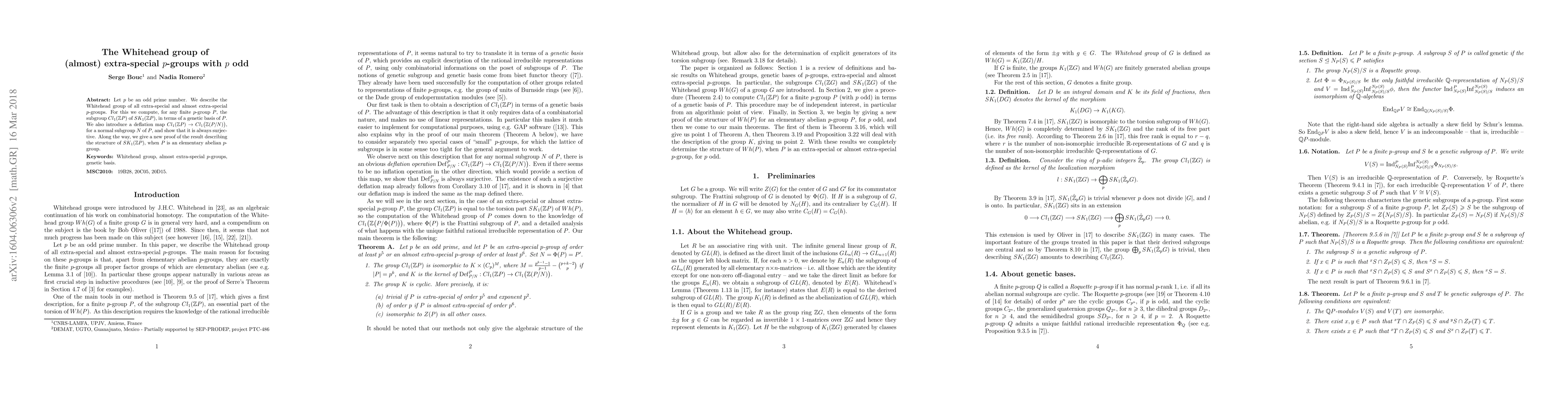 This paper explores the Whitehead group of extra-special and almost extra-special p-groups for odd primes p, detailing the subgroup Cl\_1 (ZP) of SK\_1 (ZP) based on a genetic basis of P. It introduces a deflation map from Cl\_1 (ZP) to Cl\_1 (Z(P/N)), proving its surjectivity, and provides a new proof for the structure of SK\_1 (ZP) when P is an elementary abelian p-group.