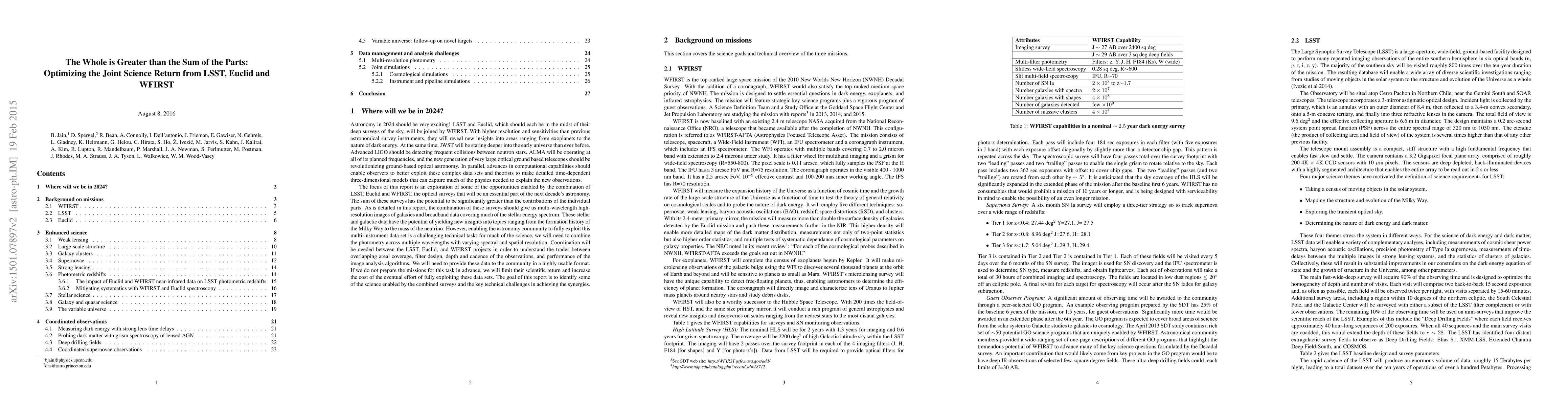 This report explores the synergistic potential of combining data from LSST, Euclid, and WFIRST to achieve greater scientific returns than each survey could individually. It highlights the technical challenges of integrating multi-wavelength, high-resolution images and broadband data to unlock new insights into cosmic phenomena.