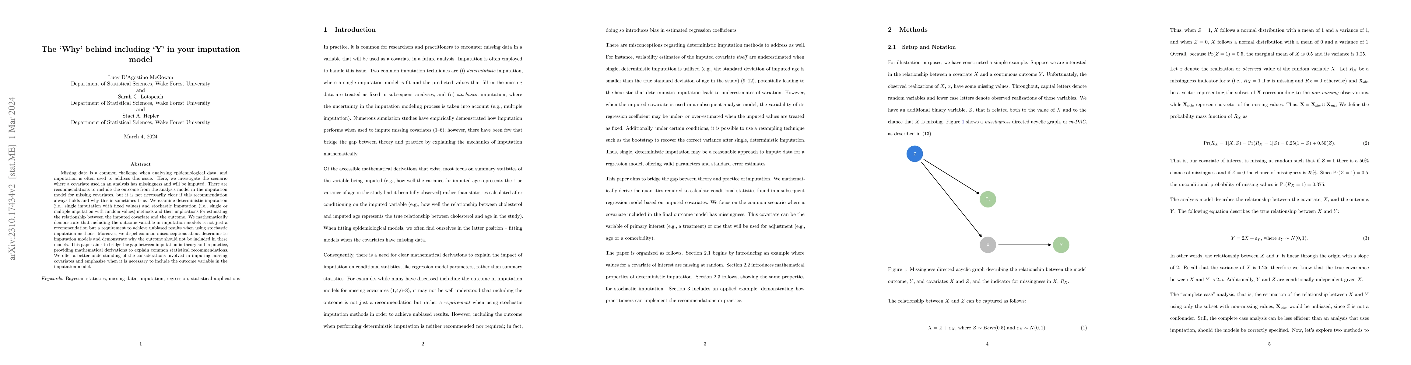 This paper explores the necessity of including the outcome variable in imputation models for missing covariates in epidemiological data, showing mathematically that it is crucial for unbiased results with stochastic imputation but not for deterministic imputation. It clarifies misconceptions and bridges theoretical and practical imputation approaches.