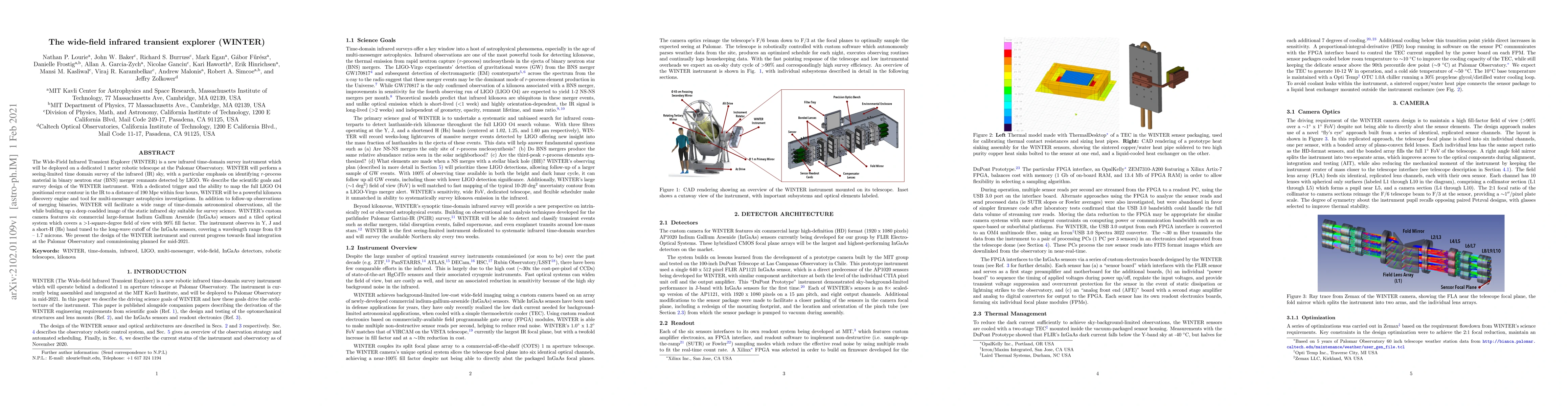 The WINTER instrument, deployed on a robotic telescope at Palomar Observatory, aims to conduct a seeing-limited infrared time-domain survey, focusing on identifying r-process material in binary neutron star merger remnants detected by LIGO. It will facilitate multi-messenger astrophysics and cover a $>$1-square-degree field of view with a custom camera featuring InGaAs sensors.