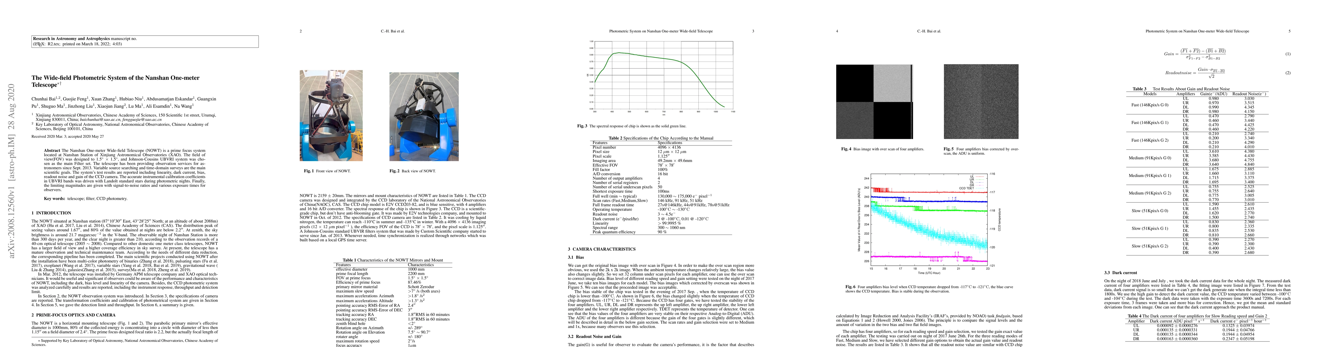 The Nanshan One-meter Wide-field Telescope (NOWT) offers a 1.5° x 1.5° field of view using the Johnson-Cousins UBVRI system for photometric observations, with variable source searching and time-domain surveys as its main scientific goals. The system's performance, including CCD camera characteristics and instrumental calibration, has been thoroughly tested and documented.