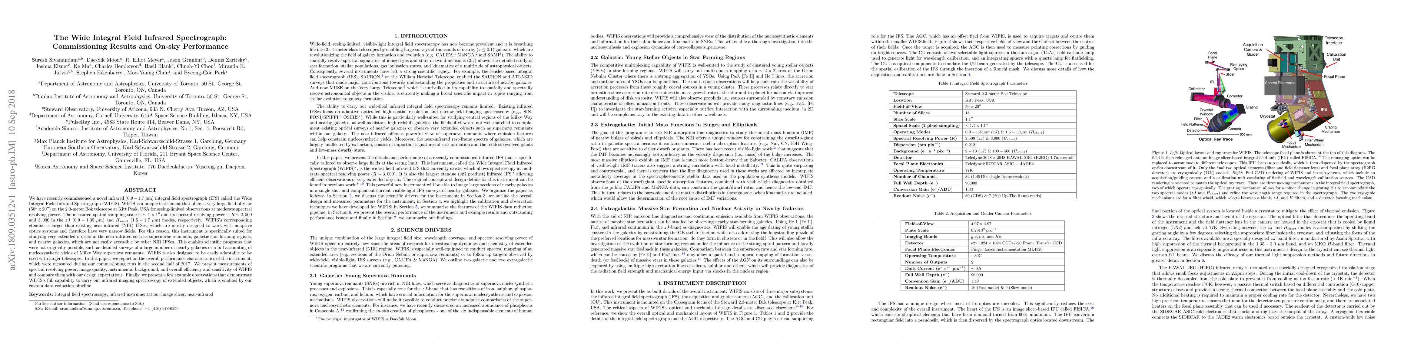 The WIFIS, a new infrared integral field spectrograph, has been commissioned for the 2.3-meter Bok telescope, offering a large field-of-view and moderate spectral resolution. Initial performance tests show it to be highly effective for studying extended near-infrared objects, with capabilities for detailed surveys and nucleosynthetic yield analysis.