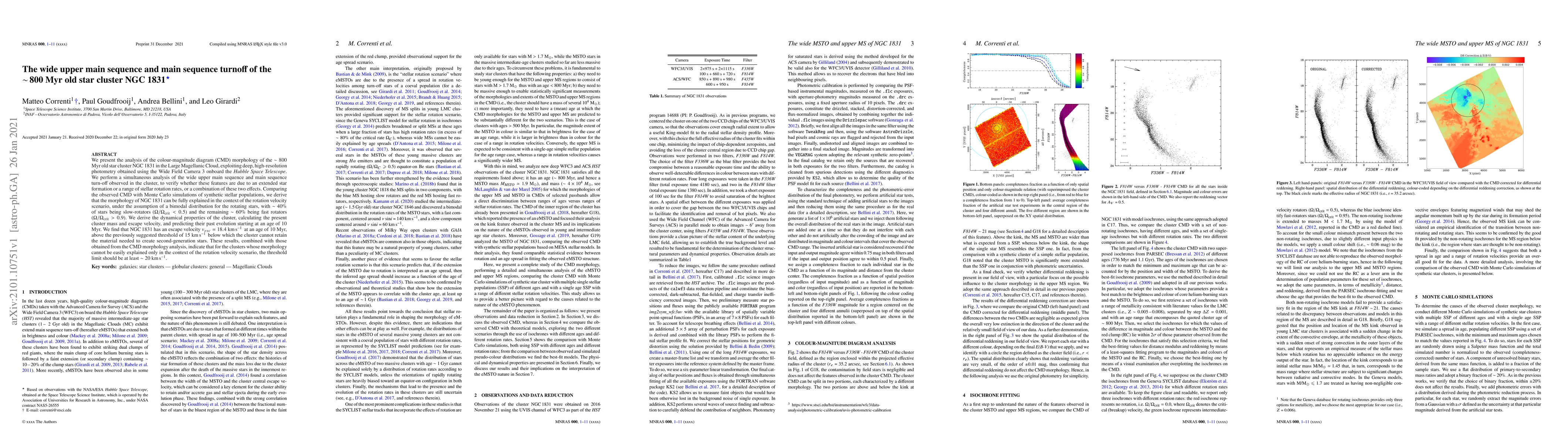 This paper analyzes the color-magnitude diagram of NGC1831, revealing a wide upper main sequence and main sequence turnoff, which is attributed to a bimodal distribution of stellar rotation rates rather than extended star formation. The cluster's escape velocity at 10 Myr suggests a threshold of ~20 km/s for retaining material for second-generation stars.