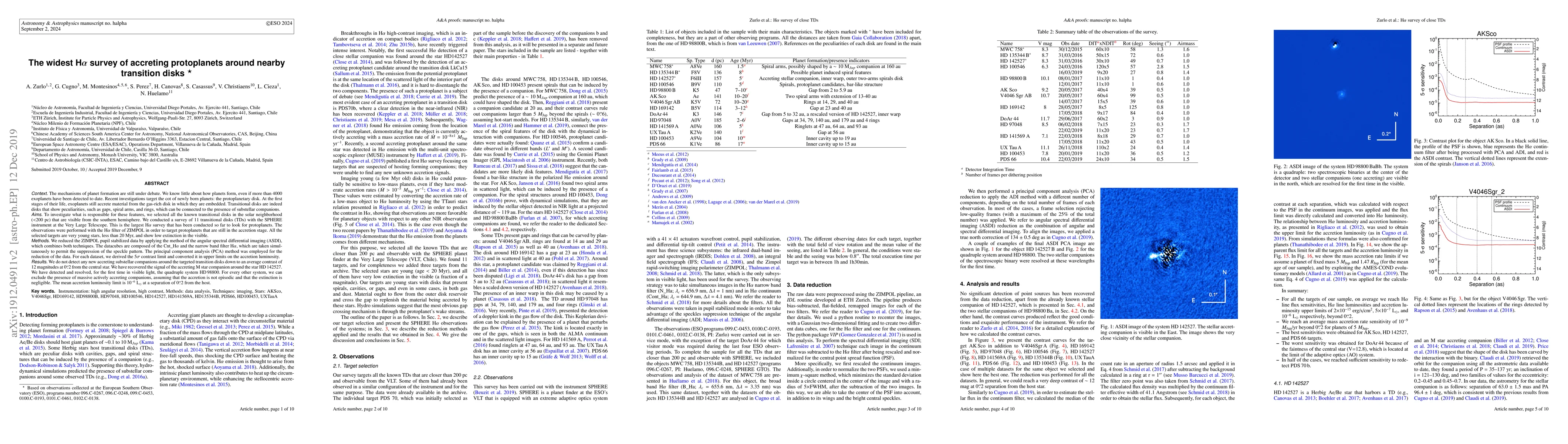 The mechanisms of planet formation are still under debate. We know little about how planets form, even if more than 4000 exoplanets have been detected to date. Recent investigations target the cot of newly born planets: the protoplanetary disk. At the first stages of their life, exoplanets still accrete material from the gas-rich disk in which they are embedded. Transitional disks are indeed disks that show peculiarities, such as gaps, spiral arms, and rings, which can be connected to the presence of substellar companions. To investigate what is responsible for these features, we selected all the known transitional disks in the solar neighborhood (<200 pc) that are visible from the southern hemisphere. We conducted a survey of 11 transitional disks (TDs) with the SPHERE instrument at the VLT. This is the largest Halpha survey that has been conducted so far to look for protoplanets. The observations were performed with the Halpha filter of ZIMPOL in order to target protoplanets that are still in the accretion stage. All the selected targets are very young stars, less than 20 Myr, and show low extinction in the visible. We reduced the ZIMPOL pupil stabilized data by applying the method of the angular spectral differential imaging (ASDI), which combines both techniques. The datacubes are composed of the CntHalpha and the narrow band filter Halpha, which are taken simultaneously to permit the suppression of the speckle pattern. The principal component analysis (PCA) method was employed for the reduction of the data. For each dataset, we derived the 5sigma contrast limit and converted it in upper limits on the accretion luminosity. We do not detect any new accreting substellar companions around the targeted transition disks down to an average contrast of 12 magnitudes at 0.2 arcsec from the central star (continues in the manuscript).