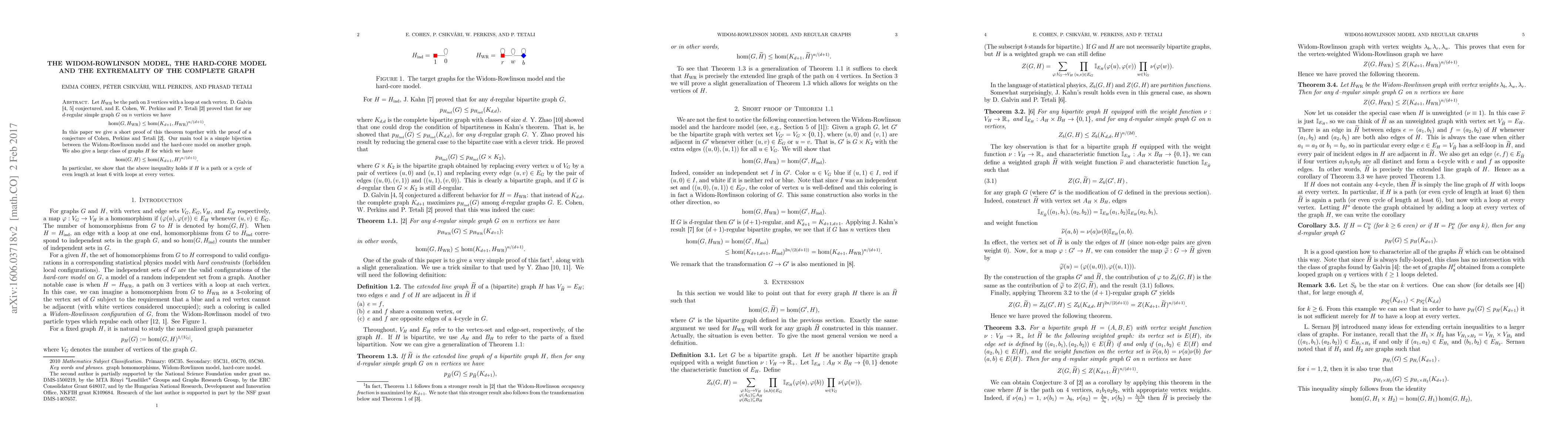 Let $H_{\mathrm{WR}}$ be the path on $3$ vertices with a loop at each vertex. D. Galvin conjectured, and E. Cohen, W. Perkins and P. Tetali proved that for any $d$-regular simple graph $G$ on $n$ vertices we have $$\hom(G,H_{\mathrm{WR}})\leq \hom(K_{d+1},H_{\mathrm{WR}})^{n/(d+1)}.$$ In this paper we give a short proof of this theorem together with the proof of a conjecture of Cohen, Perkins and Tetali. Our main tool is a simple bijection between the Widom-Rowlinson model and the hard-core model on another graph. We also give a large class of graphs $H$ for which we have $$\hom(G,H)\leq \hom(K_{d+1},H)^{n/(d+1)}.$$ In particular, we show that the above inequality holds if $H$ is a path or a cycle of even length at least $6$ with loops at every vertex.