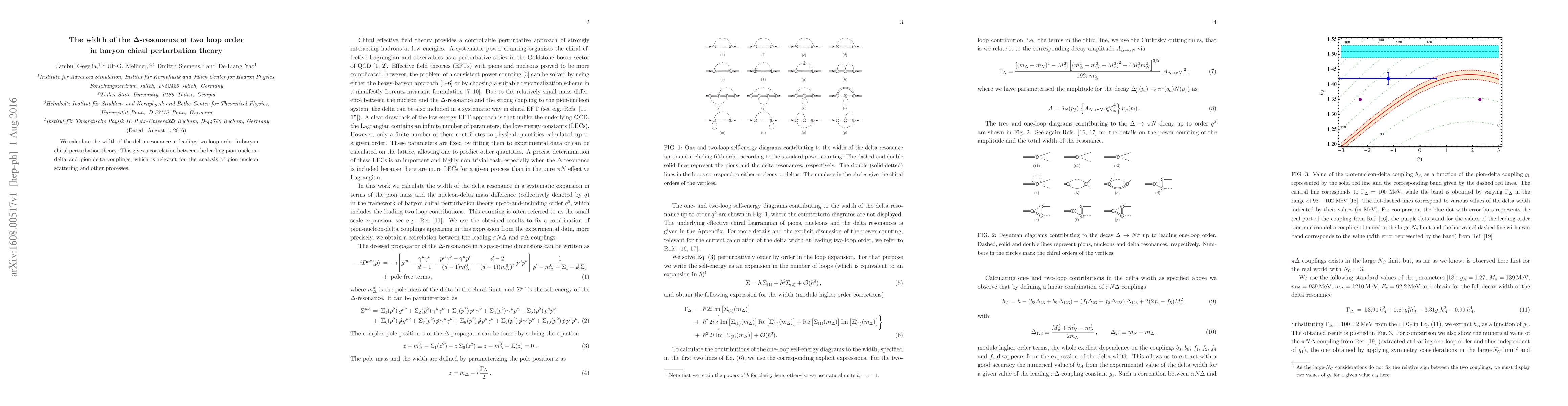We calculate the width of the delta resonance at leading two-loop order in baryon chiral perturbation theory. This gives a correlation between the leading pion-nucleon-delta and pion-delta couplings, which is relevant for the analysis of pion-nucleon scattering and other processes.