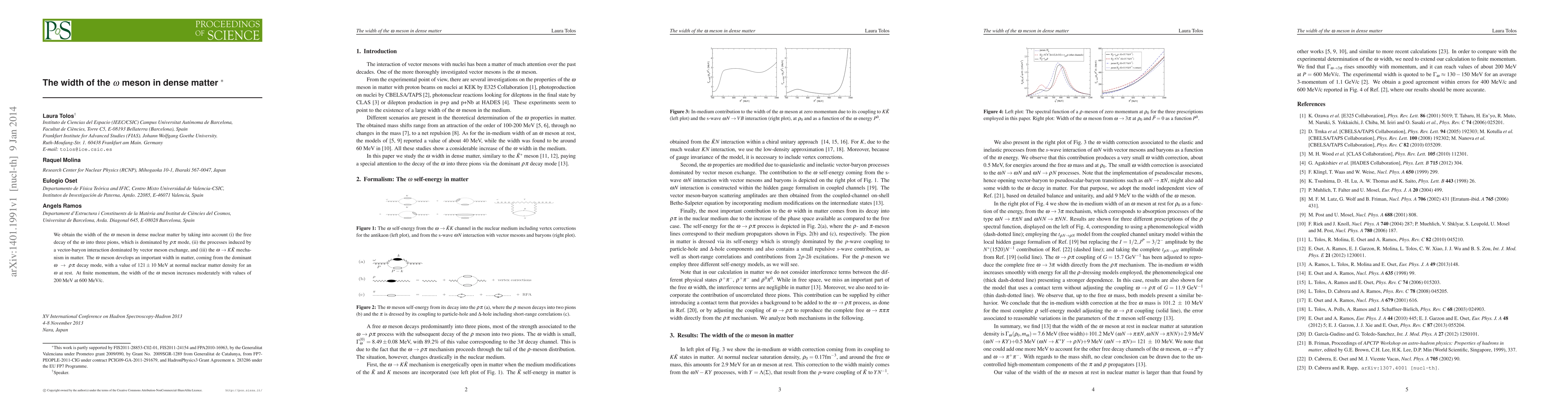 This paper investigates the width of the $\omega$ meson in dense nuclear matter, finding it significantly broadens due to the $\omega \to \rho\pi$ decay mode, with a width of $121 \pm 10$ MeV at normal nuclear matter density, increasing to 200 MeV at 600 MeV/c momentum.