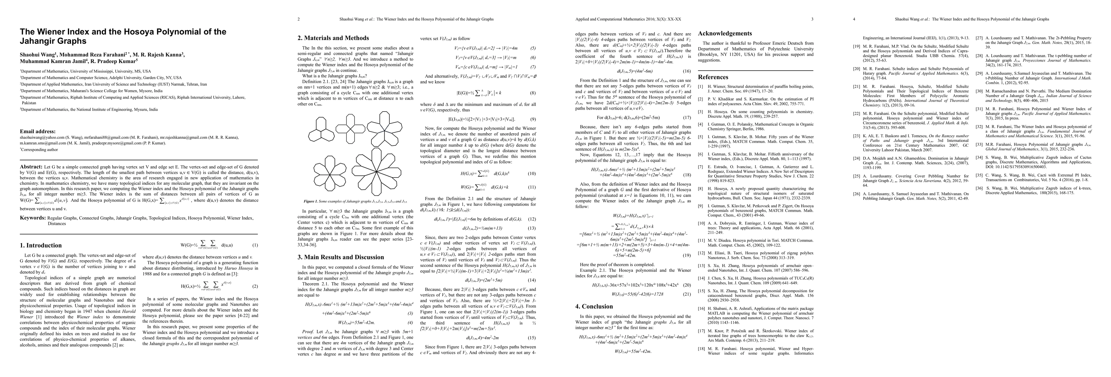 This research paper computes the Wiener index and Hosoya polynomial of Jahangir graphs for m = 3 to infinity, providing a new mathematical chemistry application with topological invariants invariant under graph automorphism.