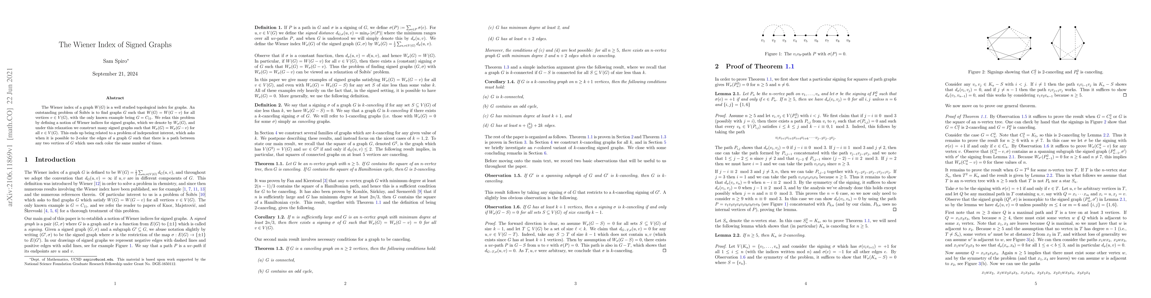 The Wiener index of a graph $W(G)$ is a well studied topological index for graphs. An outstanding problem of \v{S}olt{\'e}s is to find graphs $G$ such that $W(G)=W(G-v)$ for all vertices $v\in V(G)$, with the only known example being $G=C_{11}$. We relax this problem by defining a notion of Wiener indices for signed graphs, which we denote by $W_\sigma(G)$, and under this relaxation we construct many signed graphs such that $W_\sigma(G)=W_\sigma(G-v)$ for all $v\in V(G)$. This ends up being related to a problem of independent interest, which asks when it is possible to $2$-color the edges of a graph $G$ such that there is a path between any two vertices of $G$ which uses each color the same number of times.