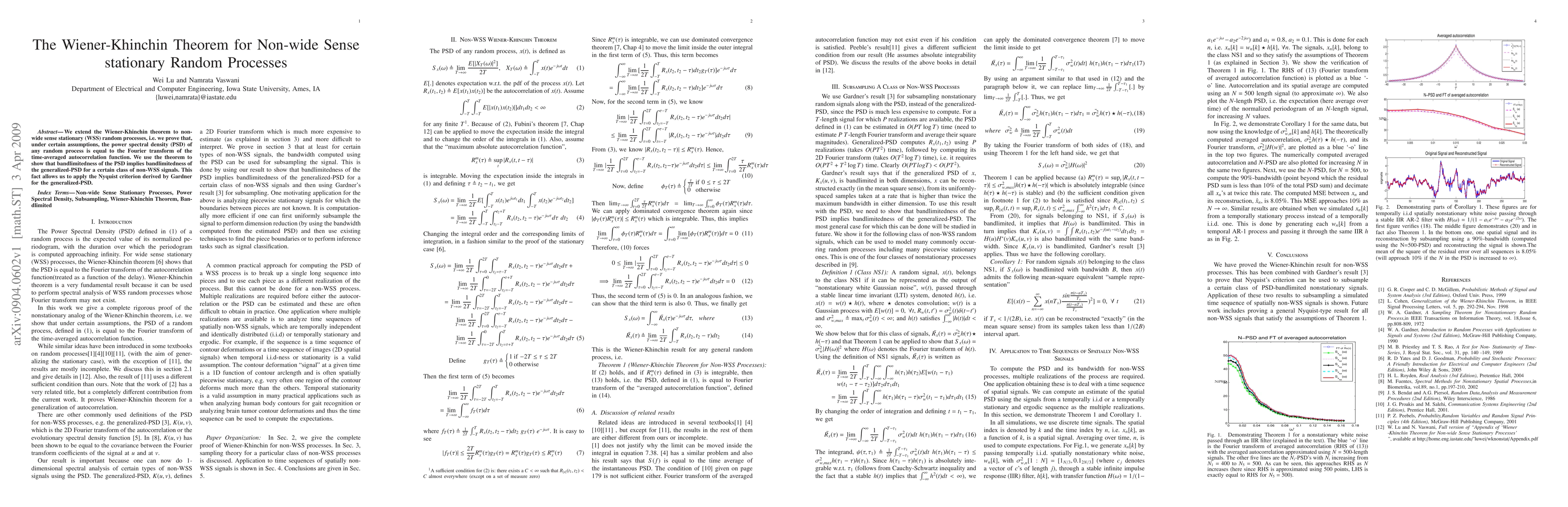 Summary: This paper extends the Wiener-Khinchin theorem to non-wide sense stationary random processes, proving that the power spectral density equals the Fourier transform of the time-averaged autocorrelation function under certain conditions. It also demonstrates the bandlimitedness of generalized-PSD for specific non-WSS signals and applies Gardner's Nyquist criterion to these signals.