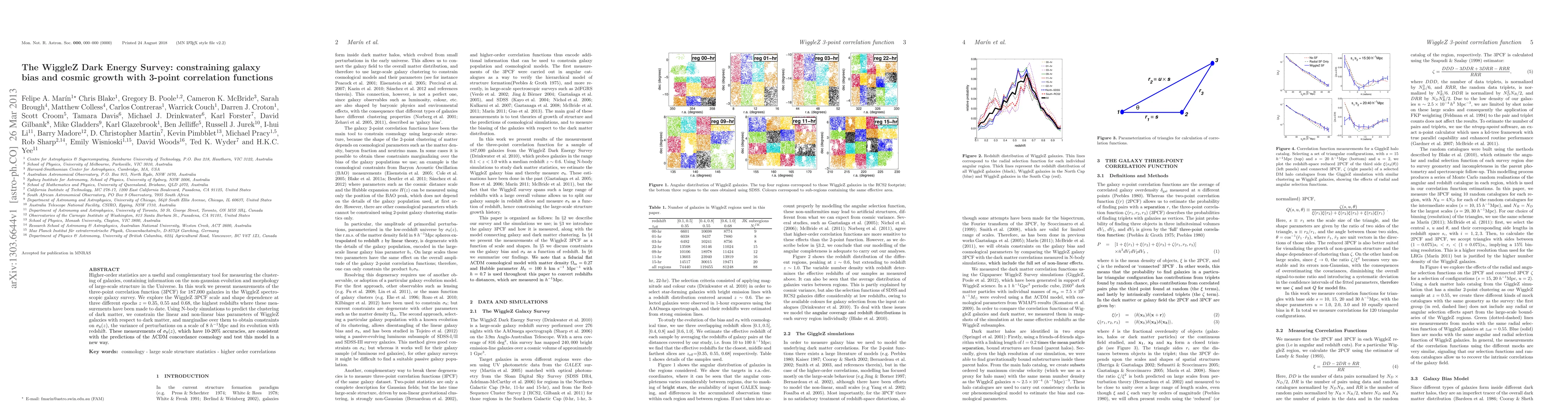 This paper measures the three-point correlation function (3PCF) for 187,000 galaxies in the WiggleZ survey to constrain galaxy bias and cosmic growth. The results provide new constraints on sigma_8(z), consistent with LCDM predictions, and test this model with higher-order statistics.