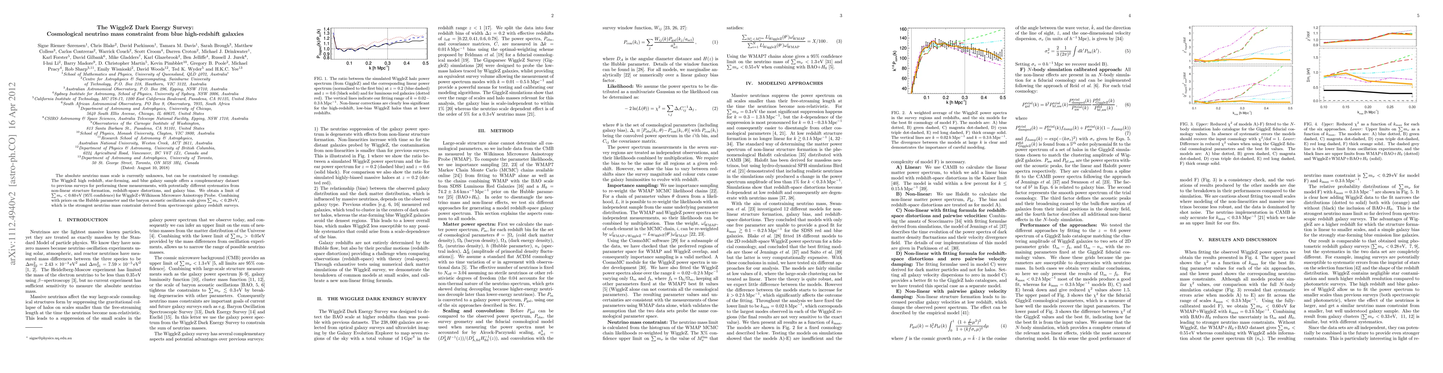 The WiggleZ Dark Energy Survey provides a stringent upper limit on the sum of neutrino masses at 0.29 eV (95% confidence) by analyzing high-redshift blue galaxies, outperforming previous surveys in minimizing systematic errors. This result is further refined by incorporating data from the Wilkinson Microwave Anisotropy Probe.