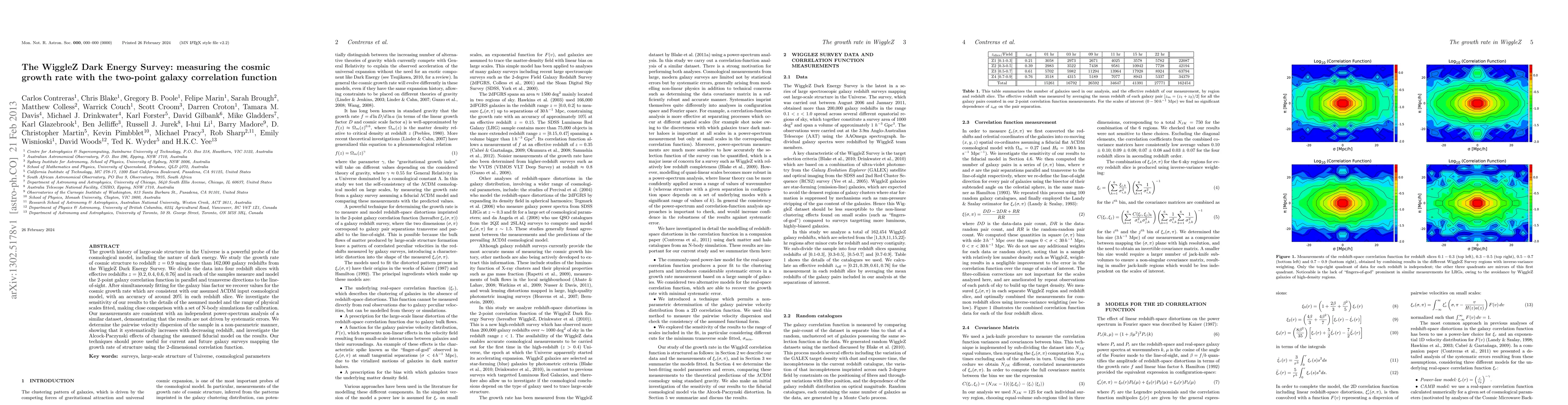 The WiggleZ Dark Energy Survey measures the cosmic growth rate using the two-point galaxy correlation function up to redshift $z = 0.9$, achieving an accuracy of about 20% and confirming consistency with the $\Lambda$CDM model. The study also investigates the pairwise velocity dispersion and Alcock-Paczynski effects, demonstrating robustness against systematic errors.