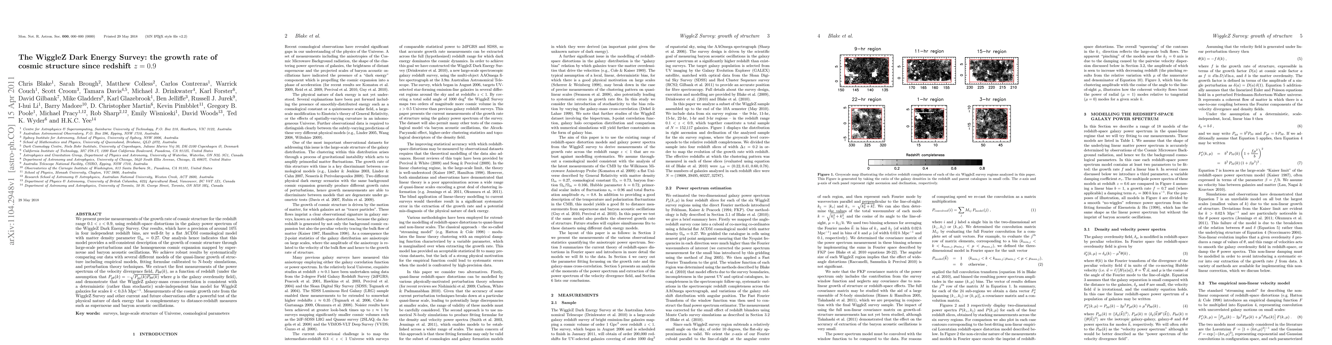 The WiggleZ Dark Energy Survey provides precise measurements of the growth rate of cosmic structure from redshift 0.1 to 0.9, indicating a flat LCDM model with Omega_m = 0.27 fits well. These results support the model's consistency across various observational methods and suggest a deterministic bias for WiggleZ galaxies.