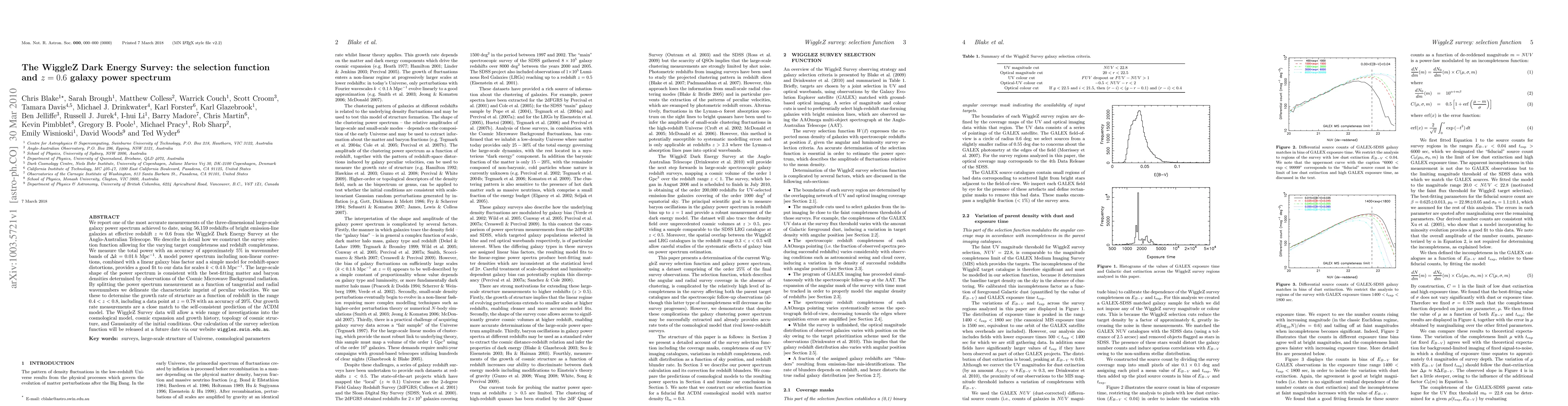 The WiggleZ Dark Energy Survey provides one of the most precise measurements of the three-dimensional large-scale galaxy power spectrum at z=0.6, revealing the growth rate of structure and matching predictions of the LCDM model. The survey's selection function, accounting for varying target and redshift completeness, allows for accurate analysis of peculiar velocities and cosmic expansion history.