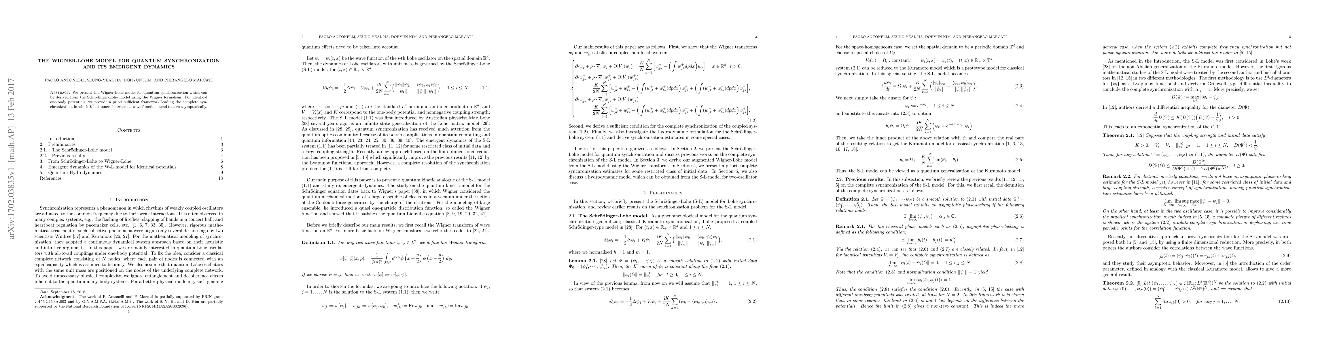 We present the Wigner-Lohe model for quantum synchronization which can be derived from the Schr\"{o}dinger-Lohe model using the Wigner formalism. For identical one-body potentials, we provide a priori sufficient framework leading the complete synchronization, in which $L^2$-distances between all wave functions tend to zero asymptotically.